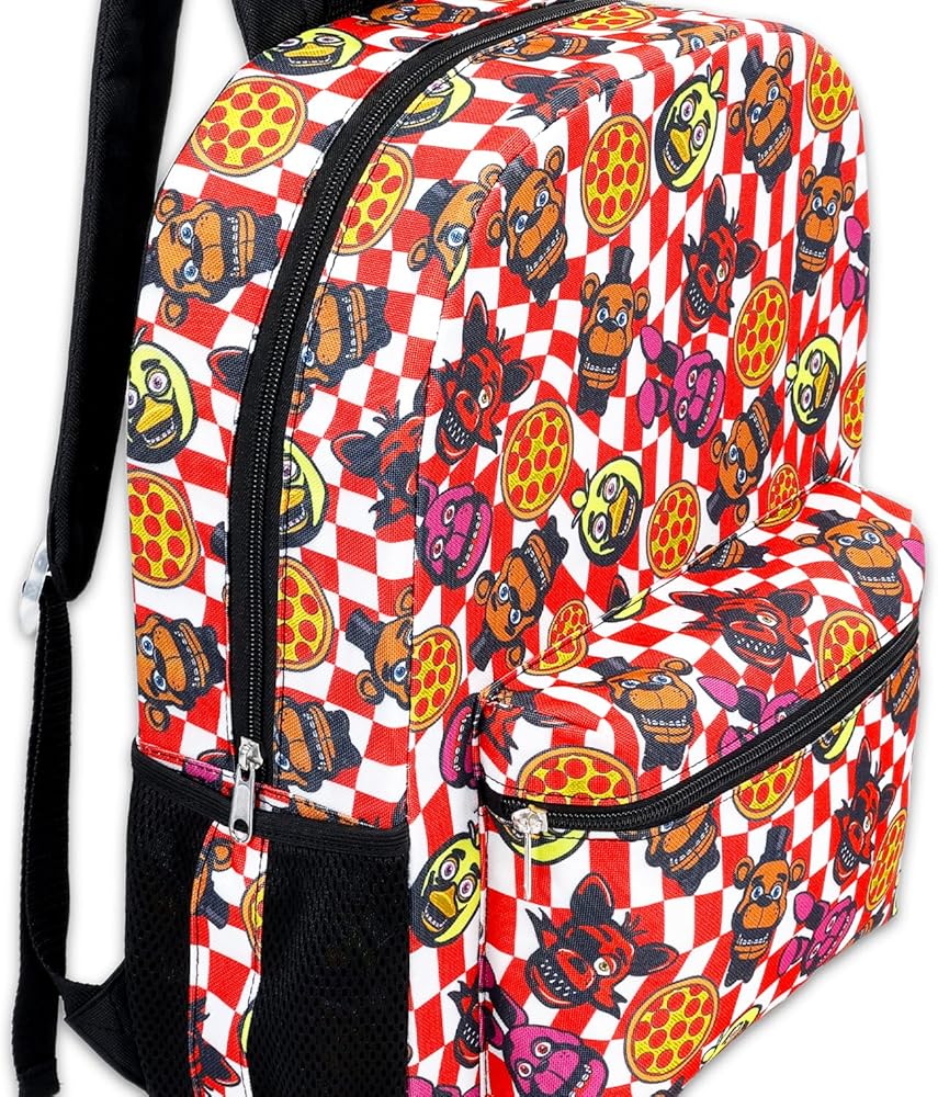 Five Nights at Freddy's Backpack for Boys - Bundle with FNAF Backpack for Kids Plus Stickers, Water Bottle, More | Five Nights at Freddy's School Bag Set for Kids. This Five Nights at Freddy's backpack set includes one FNAF school bag with colorful artwork of Freddy, Foxy, Chica, and Bonnie with adjustable shoulder straps and top loop for hanging. Made of durable material, this Five Nights at Freddy's school backpack is sure to last and will carry everything you need with you no matter where you go. Sure to be a hit with FNAF fans, this Five Nights at Freddy's school backpack for boys can double as a travel bag, storage container, and more! This Five Nights at Freddy's backpack pairs perfectly with all other Five Nights at Freddy's merchandise. Officially licensed Five Nights at Freddy's backpack for kids custom product bundle also includes a Beach Kids water bottle, Five Nights at Freddy's stickers, and a Rex-Man door hanger. WARNING: CHOKING HAZARD—Small parts. Not for children under 3 yrs.