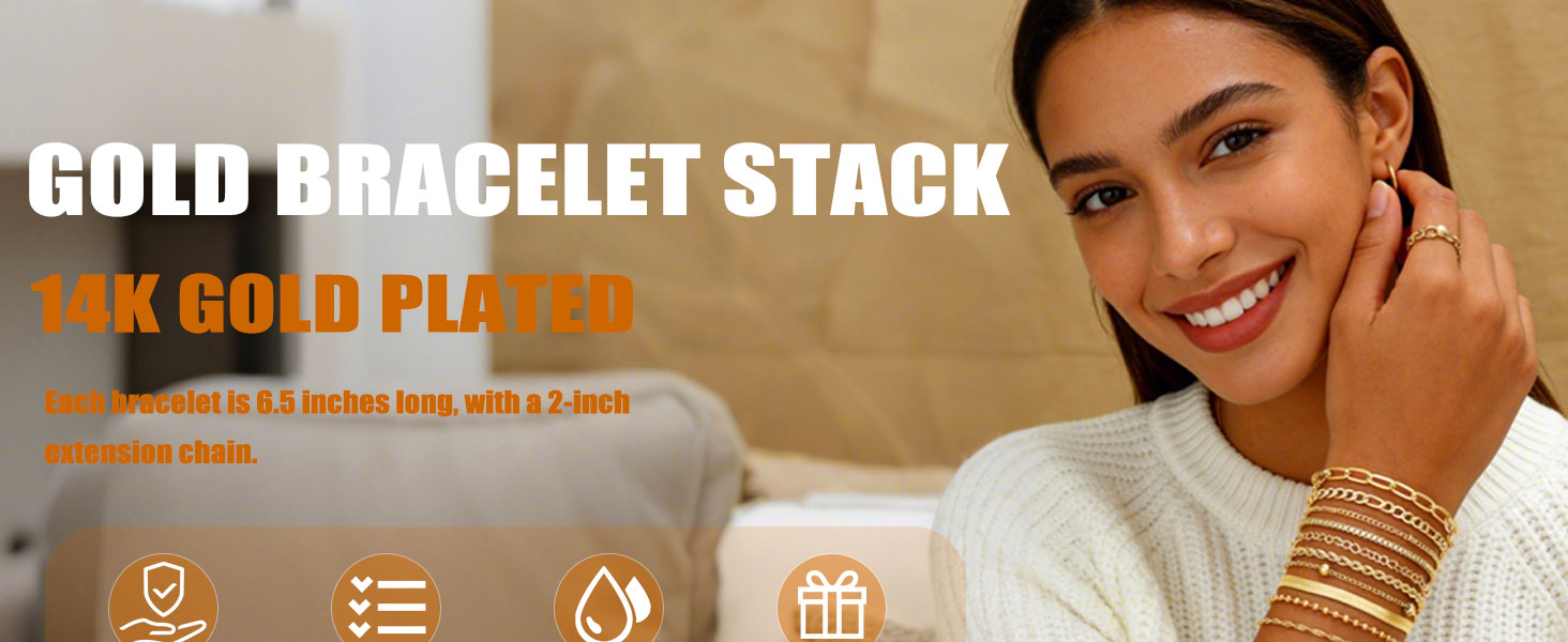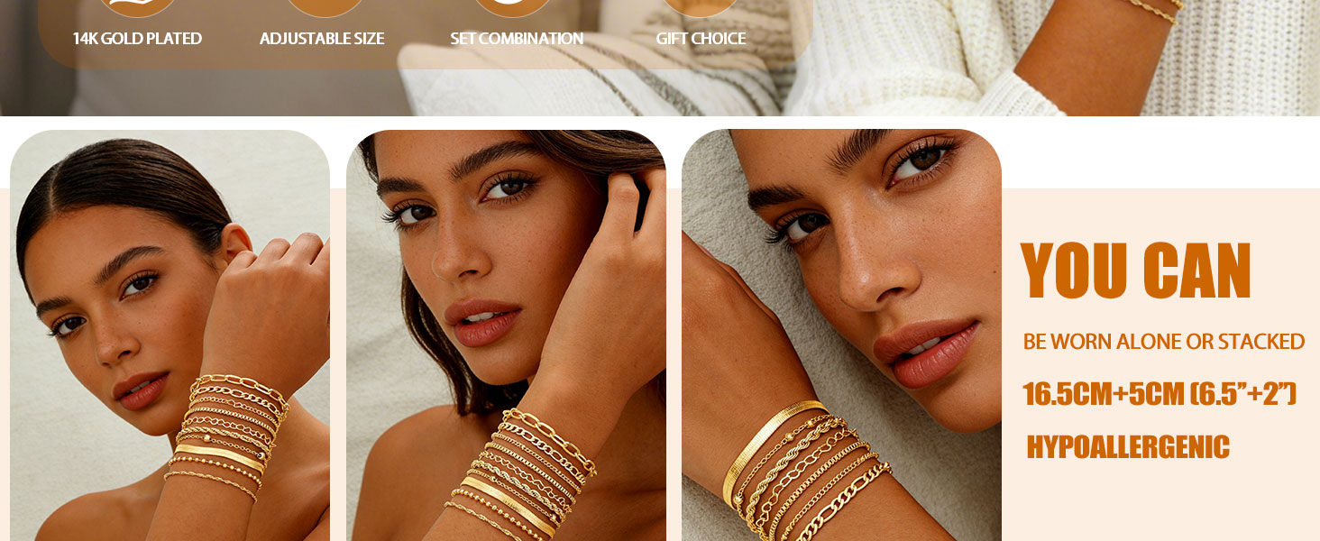 مادة غير مسببة للحساسية: هذه الأساور مصنوعة من عملية طلاء الذهب عيار 14 قيراط، وخالية من الرصاص والنيكل ولا تسبب الحساسية. مناسب جدًا للبشرة الحساسة وللاستخدام طوال اليوم.