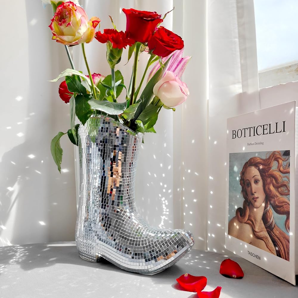 "اجعل زهورك تتراقص": قم بتحويل أي باقة إلى قطعة مركزية نابضة بالحياة. يدعوك التصميم المرح إلى إنشاء ترتيبات مذهلة تبدو وكأنها ترقص على إيقاع الغرب المتوحش، كما أن مزهرية كرة الديسكو تجعل حتى الزهور البرية البسيطة تبدو غير عادية