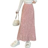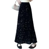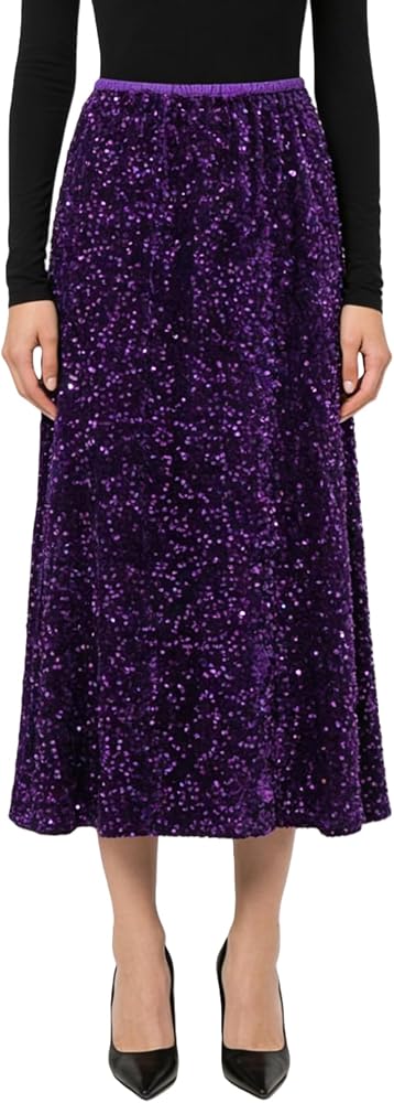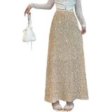ADWAXDA Sequin Maxi Skirt Elastic High Waist Long Sparkly Skirt, A-line Night Out Party Glitter Skirt