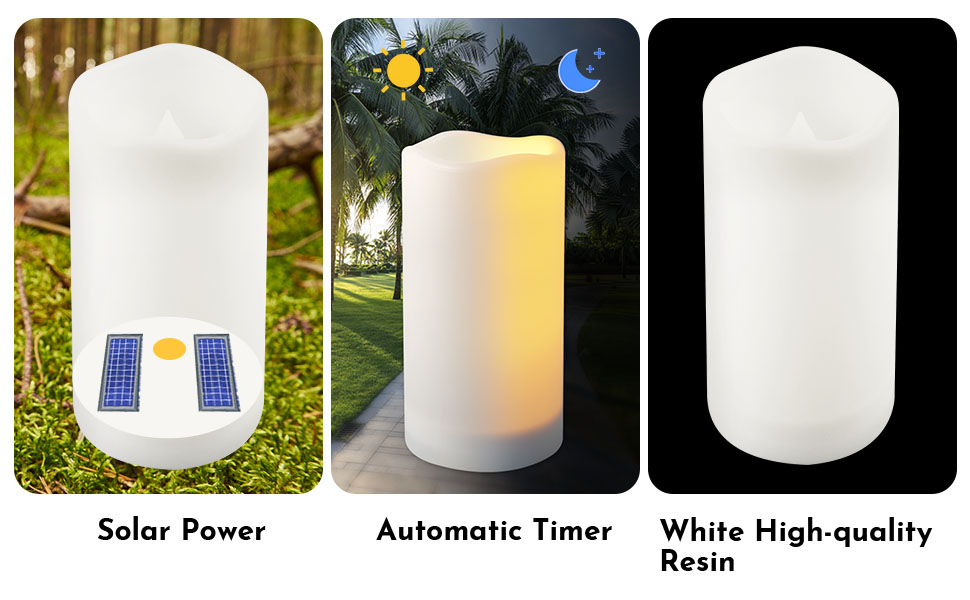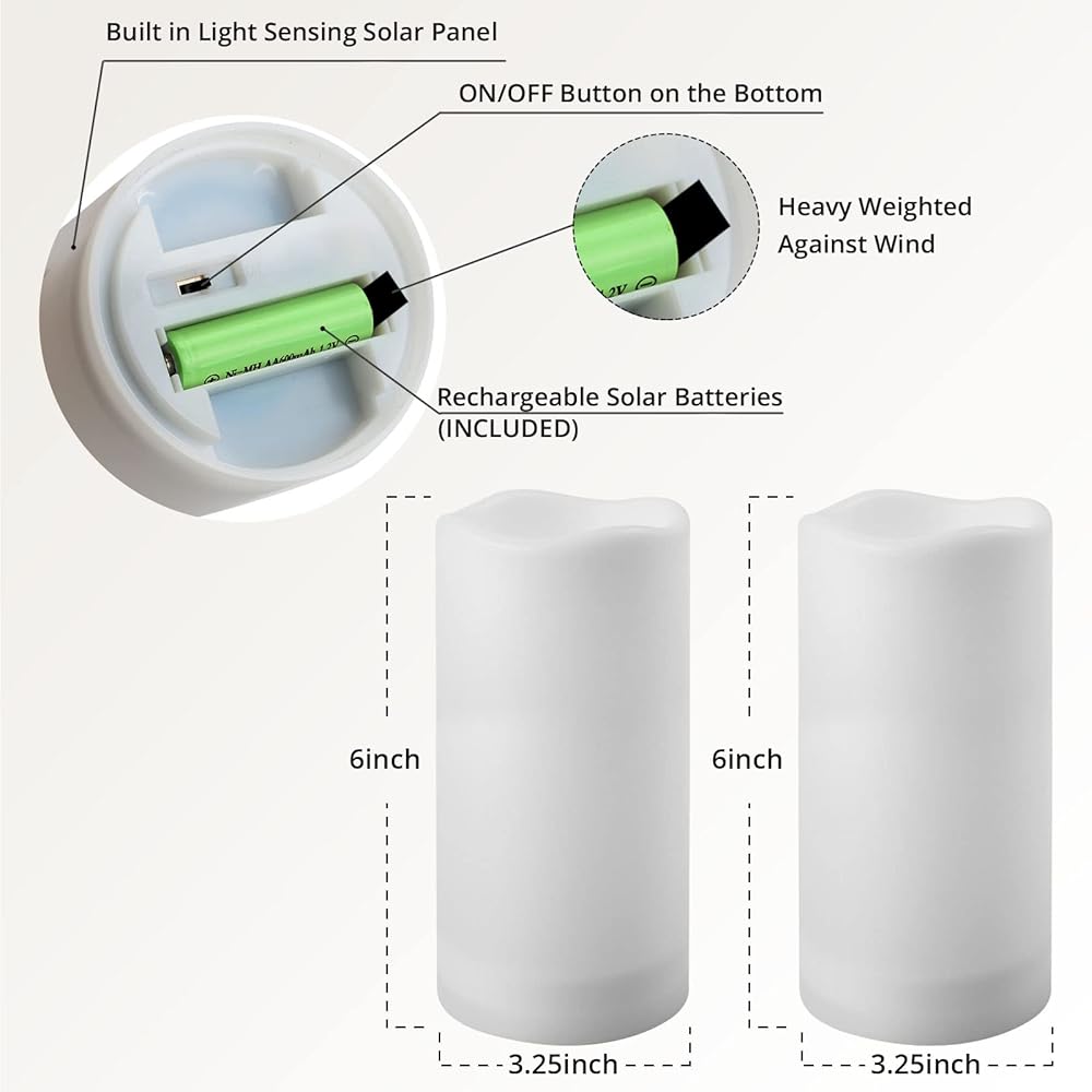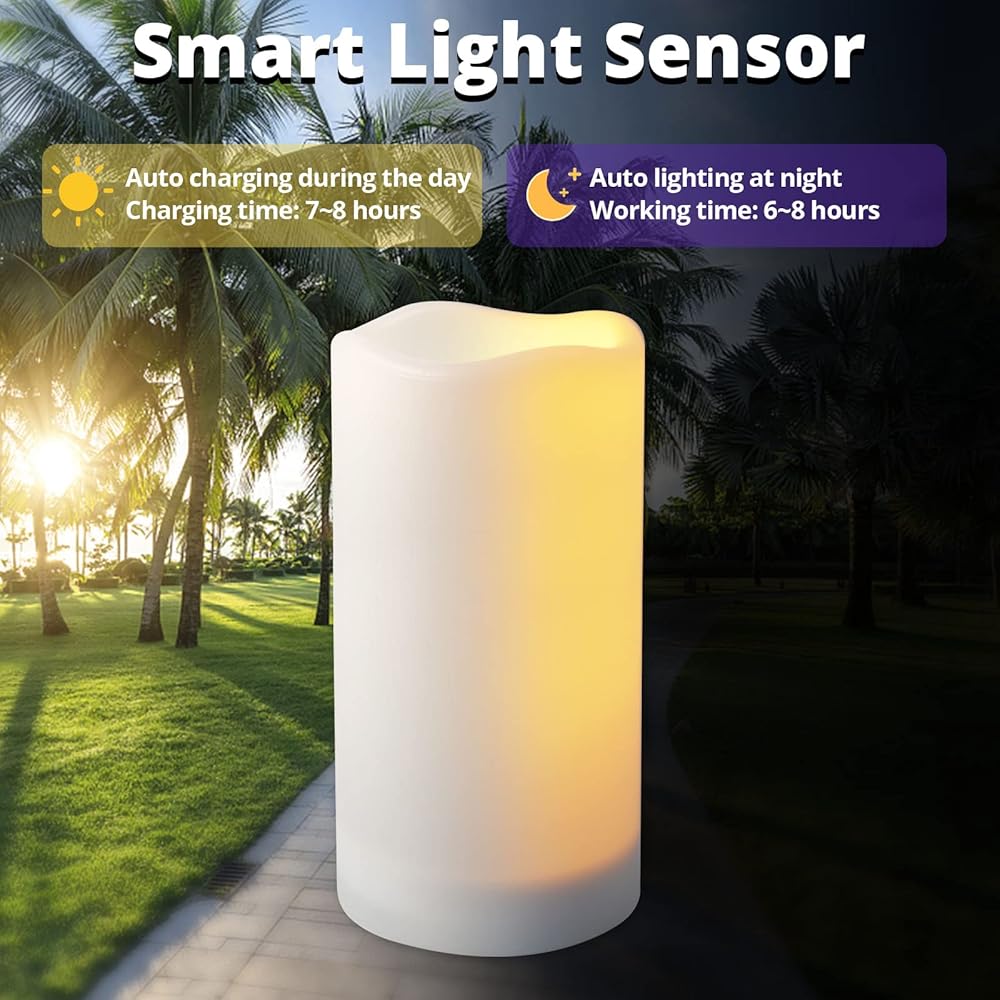 ☀️إضاءة تلقائية - تستخدم شموع عمود LED الشمسية رقائق إضاءة الحث التلقائي. فقط ضع هذه الشمعة الخارجية في الشمس وسوف تضيء تلقائيًا عندما يأتي الليل. يمكن إضاءة الشموع عديمة اللهب لمدة تصل إلى 12 ساعة في الليل عندما تكون الشمس مشرقة