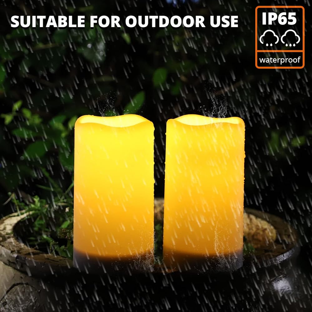 ☀️مقاومة للماء IP65--هذه الشموع الخارجية مصنوعة من الراتنج المقاوم للماء وتخفي الملحقات الرئيسية داخل الغلاف المقاوم للماء، ويمكن استخدامها لفترة طويلة في البيئة الخارجية. يمكن عرضها على طاولة الفناء أو خطوات الشرفة أو عتبة النافذة دون القلق بشأن الطقس الحار أو المطر الغزير أو الضباب. شموع الراتنج الخارجية سهلة التنظيف للغاية، فقط امسحها بقطعة قماش مبللة.