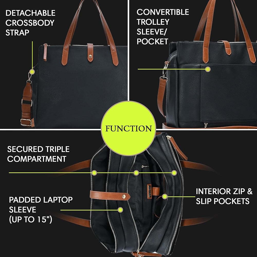 Versatile Triple Compartment Design: Features a secured triple compartment layout, keeping your essentials organized and easily accessible, making it a perfect work tote bag or weekender tote bag for women.