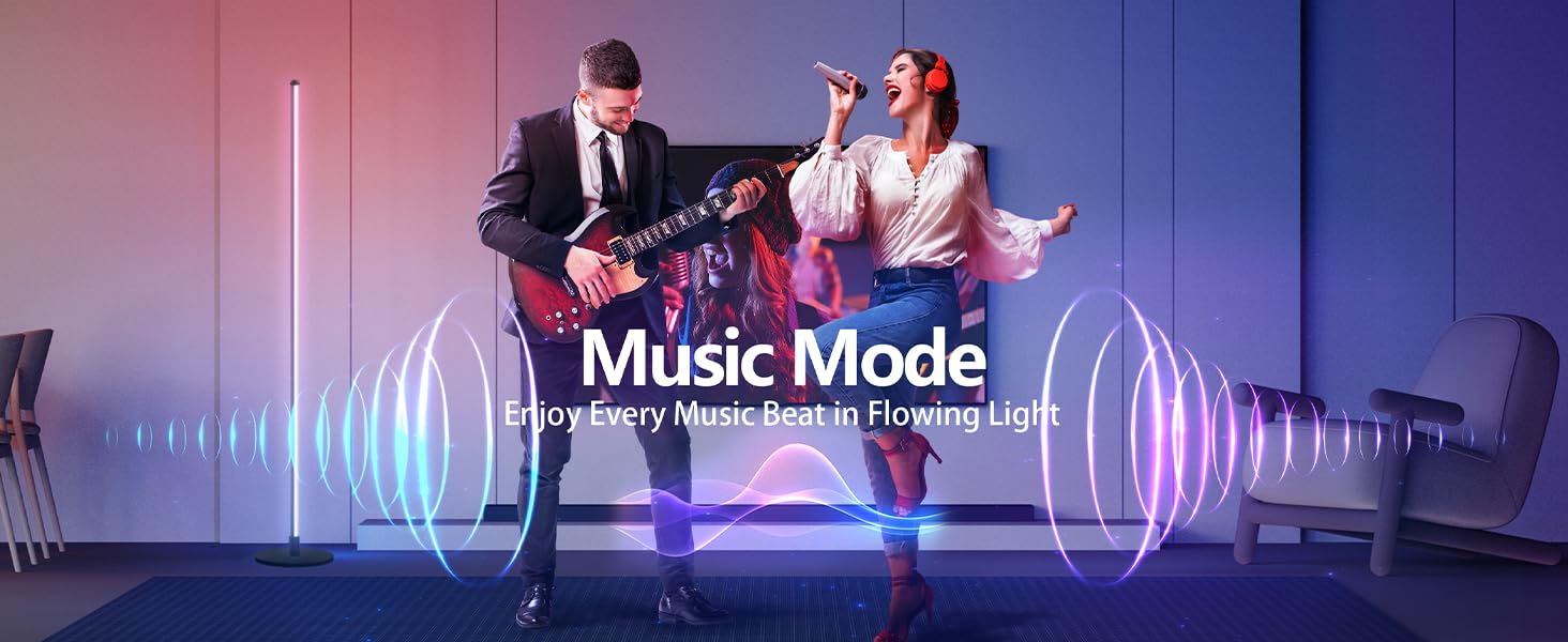 إضاءة Beat-Sync لليالي الأفلام والحفلات - باستخدام ميكروفون حساس مدمج، ستتزامن مصابيح LED الخاصة بك مع إيقاع الموسيقى أو الأفلام أو الألعاب المفضلة لديك. قم بتحسين ليالي مشاهدة الأفلام والحفلات وجلسات الألعاب باستخدام المصباح الأرضي للزاوية rgb. (أوضاع موسيقى متعددة للاختيار من بينها، يمكن تعديل حساسية الموسيقى عبر جهاز التحكم عن بعد والتطبيق)