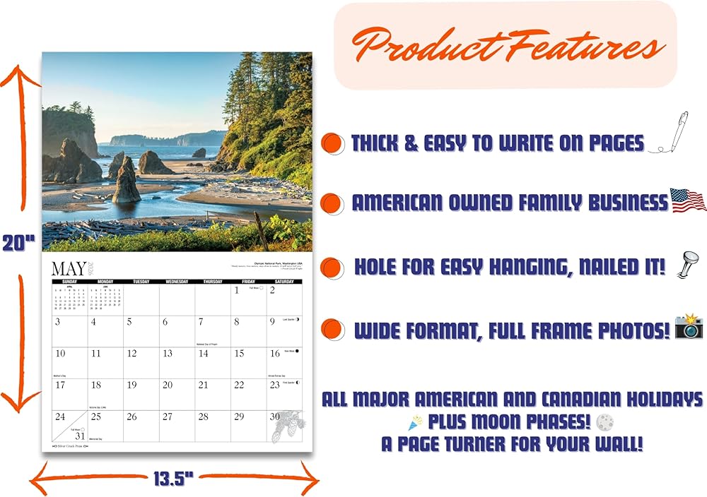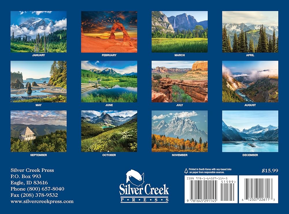 تقويم المتنزهات الوطنية 2026 - مطبعة سيلفر كريك - صور المتنزهات الوطنية بالولايات المتحدة الأمريكية - 13.5 × 10 بوصة - مصممة في الولايات المتحدة الأمريكية