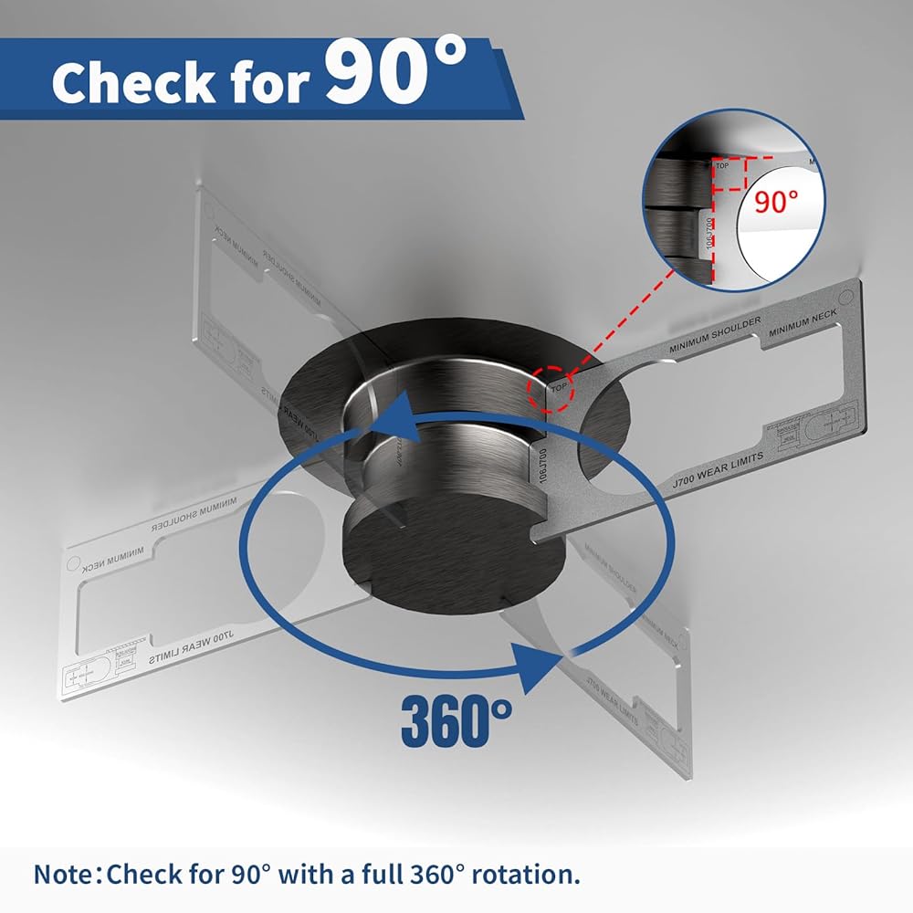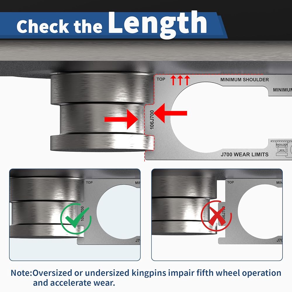 يفي بمعايير SAE J700: يقيس هذا المقياس الدقيق مدى تآكل الدبوس الكبير والارتفاع والتربيع لضمان الامتثال الكامل لمعايير السلامة SAE J700 الهامة.