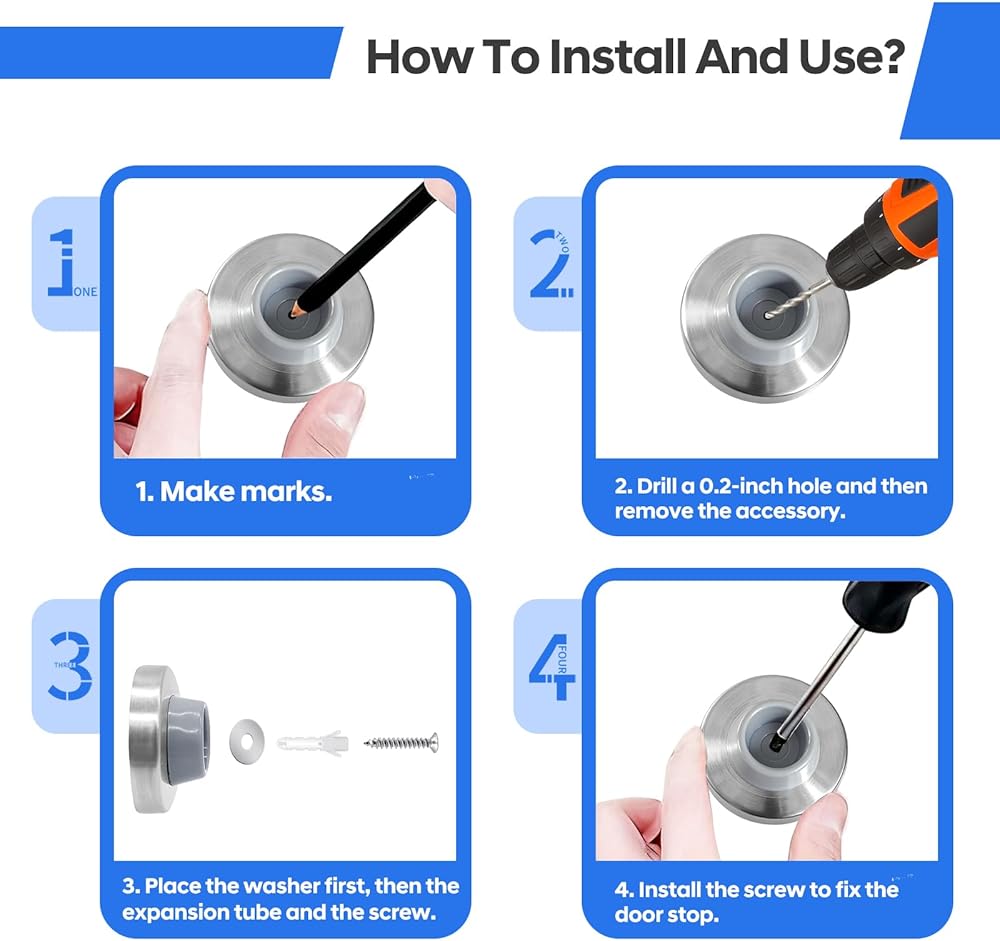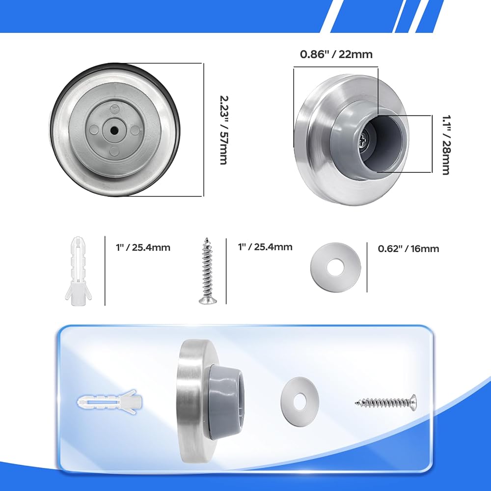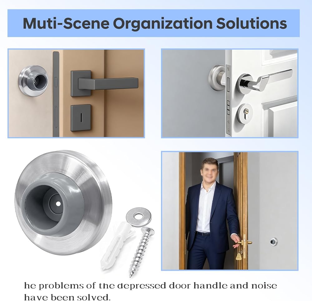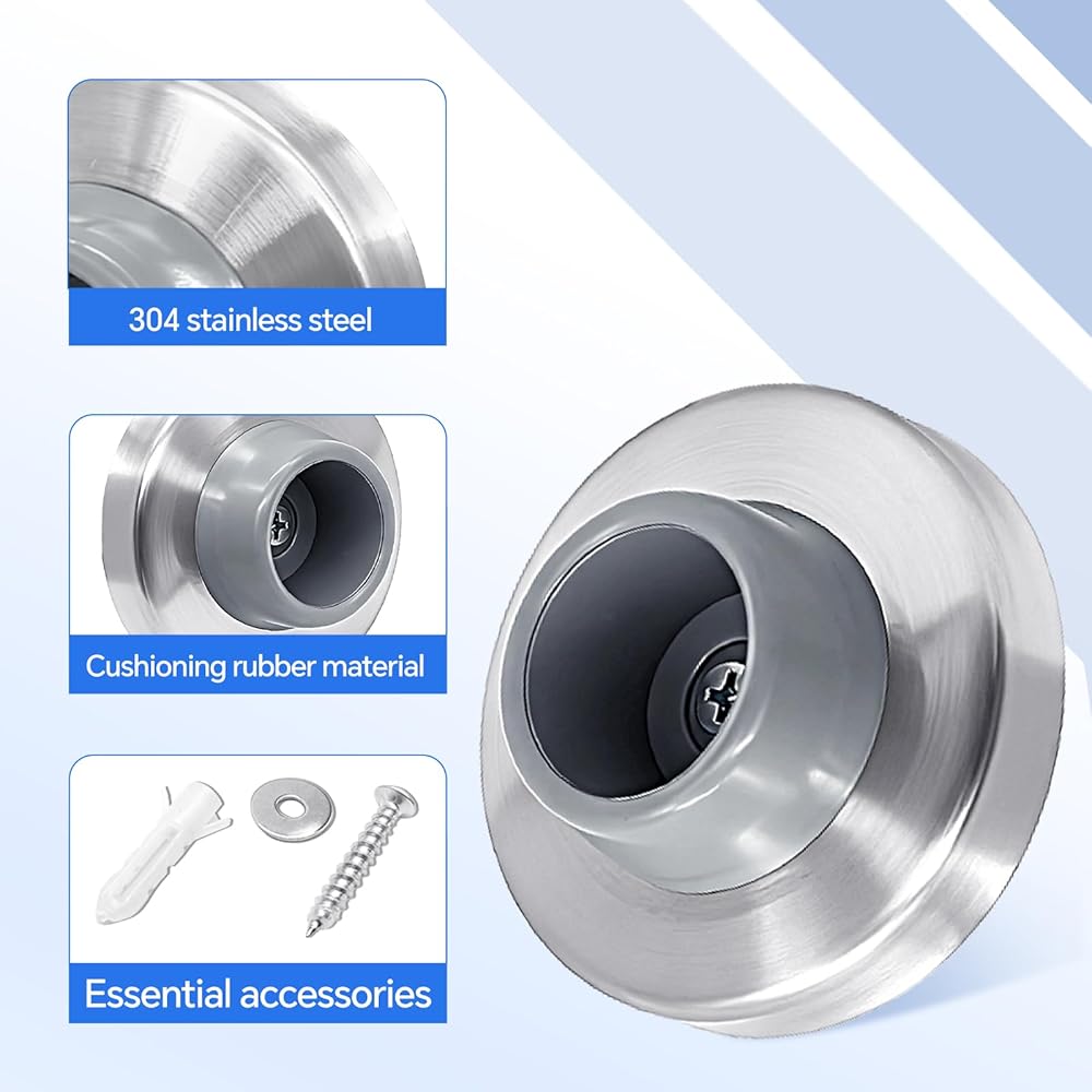Practical Materials: Features a 304 stainless steel stamped cover plate + cushioning rubber, offering rust and corrosion resistance. Lowers the door handle contact point to reduce impact noise and protects walls from dent damage.