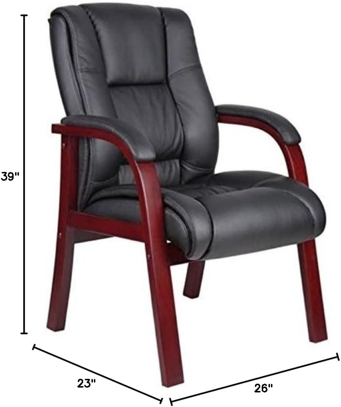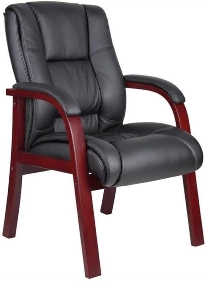 كرسي ضيوف Bowery Hill متوسط الظهر، منجد من القماش، خشب الماهوجني والانتهاء باللون الأسود، مادة CaressoftPlus المتينة، 39 بوصة ارتفاع × 26 بوصة عرض × 23 بوصة عمق، وسائد مملوءة بالداكرون، مكتب معاصر أو غرفة انتظار