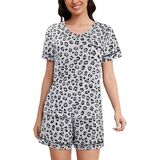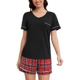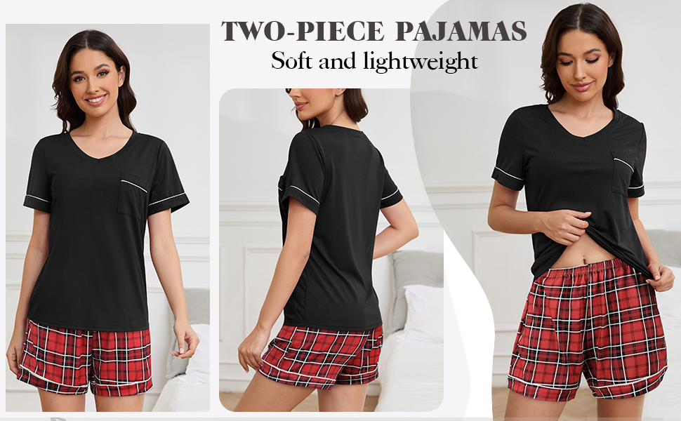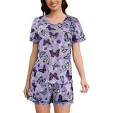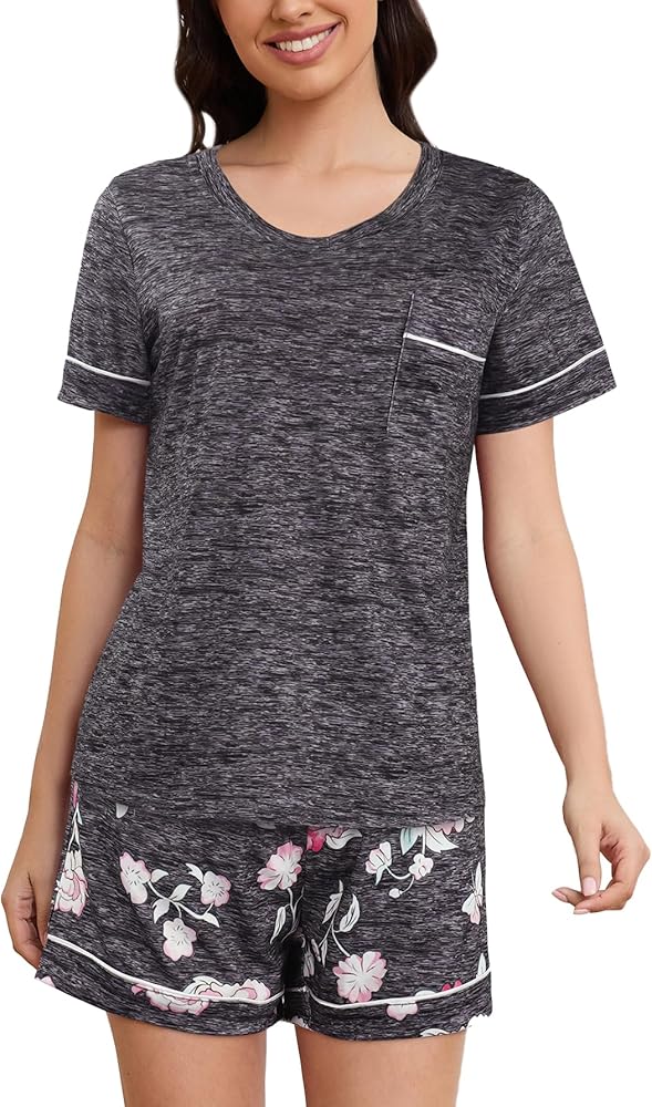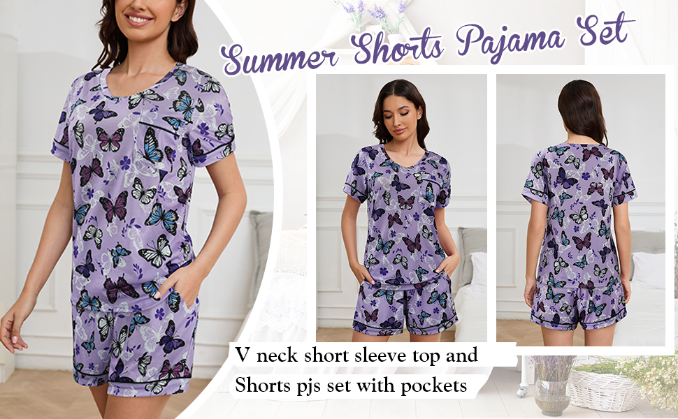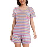 أطقم بيجامة قصيرة لطيفة للنساء: قميص بأكمام قصيرة ورقبة دائرية، حزام خصر مرن قابل للتمدد يضمن بقاء السراويل القصيرة الخاصة بك آمنة ولكن بشكل مريح.