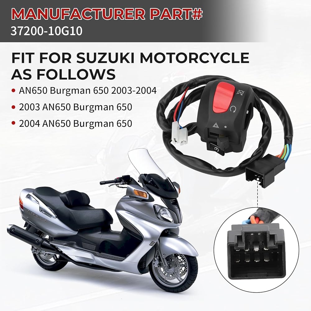 M MATI مفتاح التحكم في المقود زر إيقاف التشغيل لسوزوكي برجمان 650 AN650 2003-2004 37200-10G10