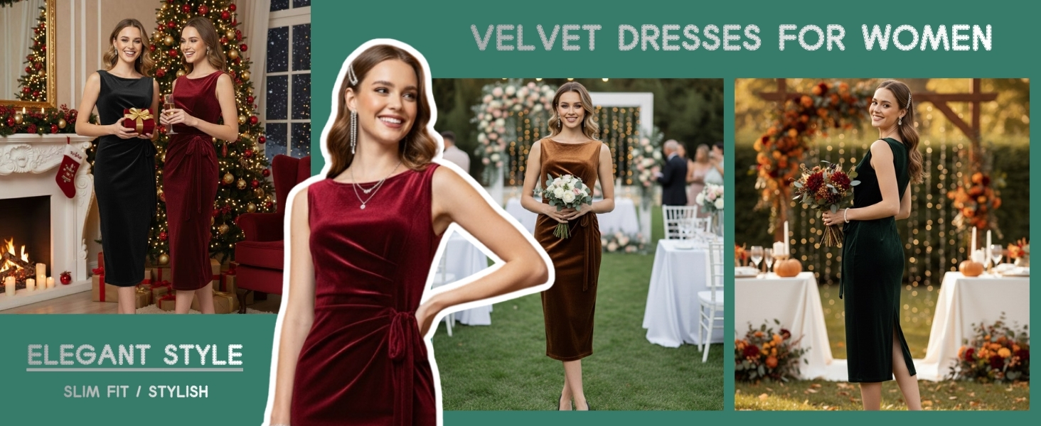• حل الاحتفال: هذا الفستان المخملي هو خيارك الموثوق به للحظات الخاصة. مزيج من القماش الناعم والتصميم الأنيق يجعله مناسبًا لضيوف الزفاف وحفلات العطلات والأمسيات الرومانسية في جميع الفصول.