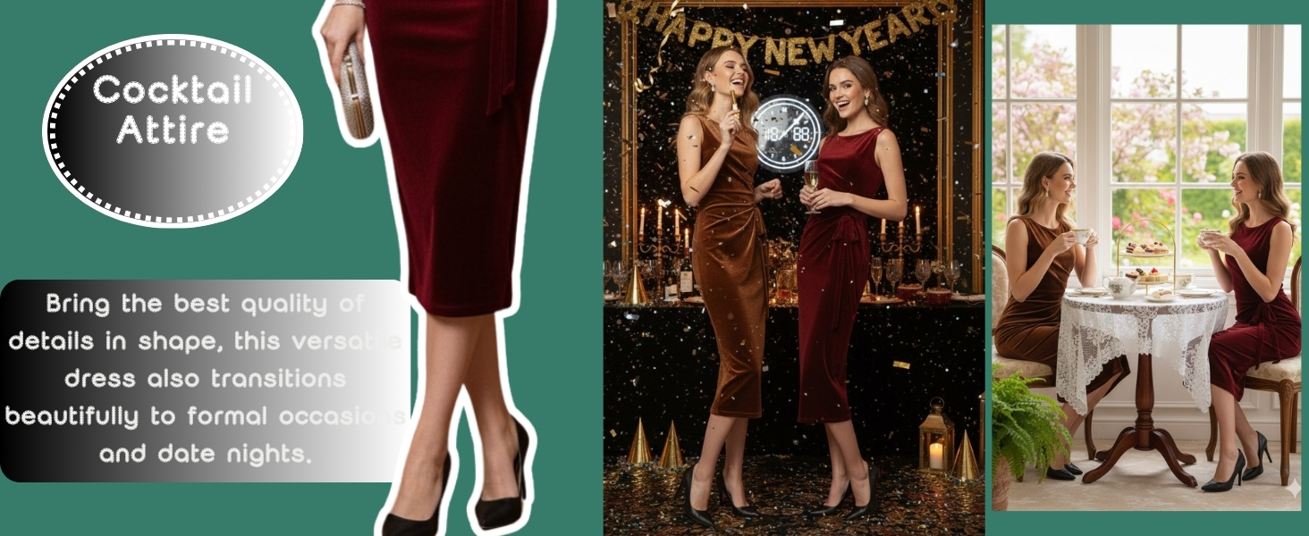 • جاهز للعديد من المناسبات: من عشاء الذكرى السنوية إلى احتفالات عيد الميلاد، يتكيف هذا الفستان المخملي مع المناسبات المختلفة. الطول المتوسط ​​واللون الثابت مناسب لحفلات الكوكتيل والنزهات المسائية والمناسبات الخاصة طوال موسم الأعياد.