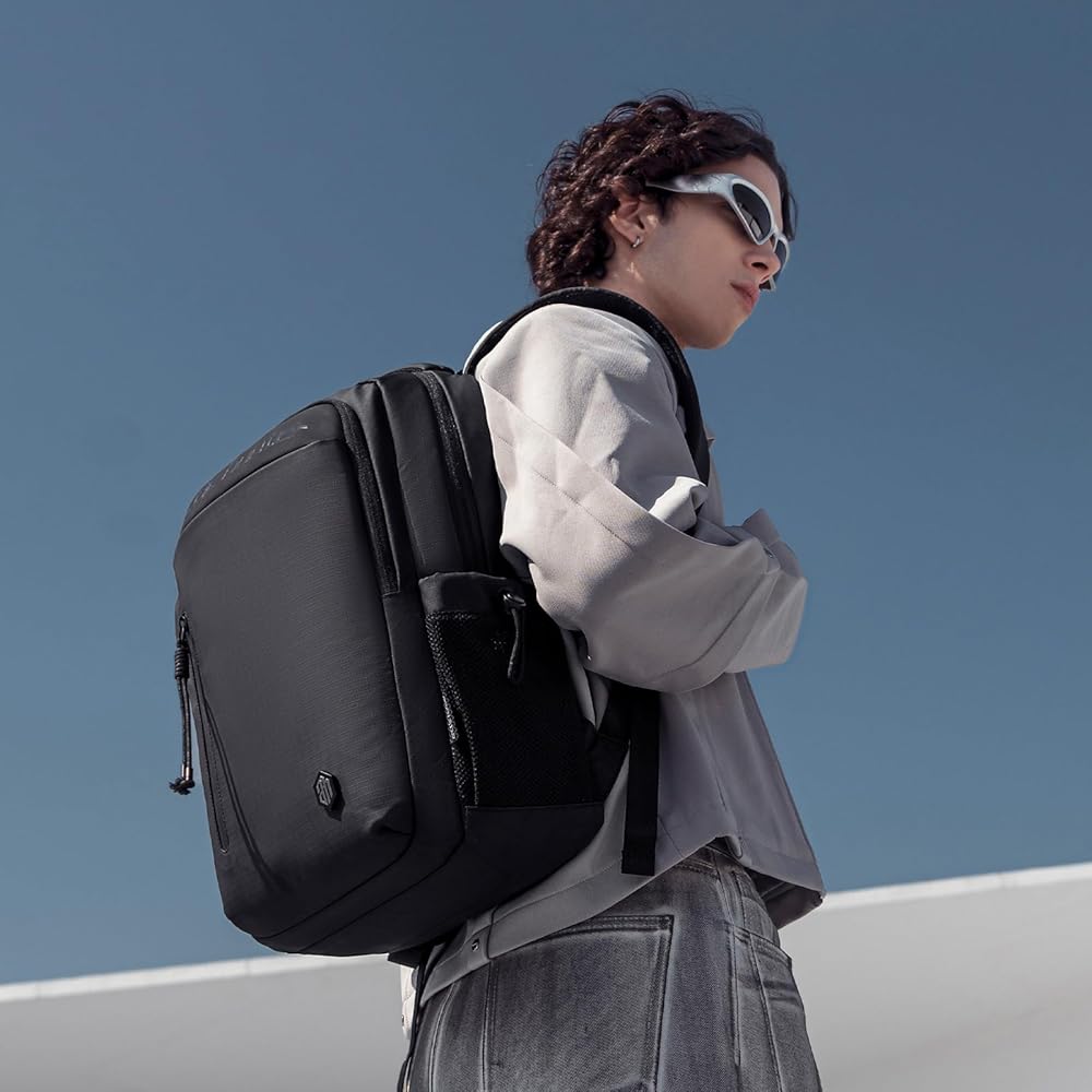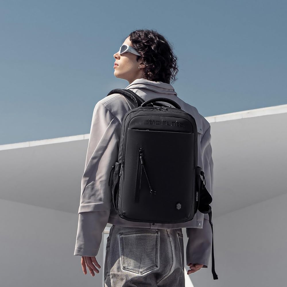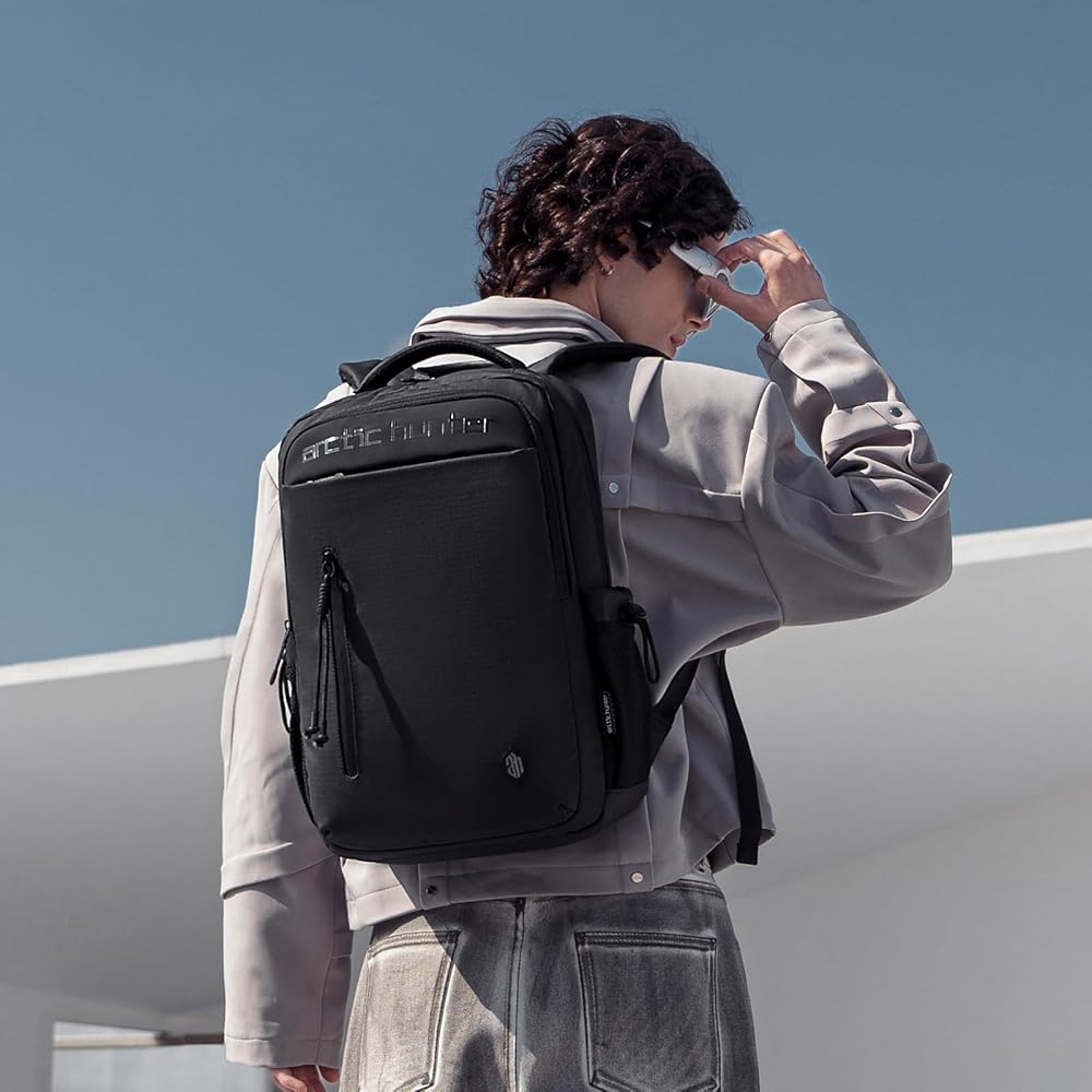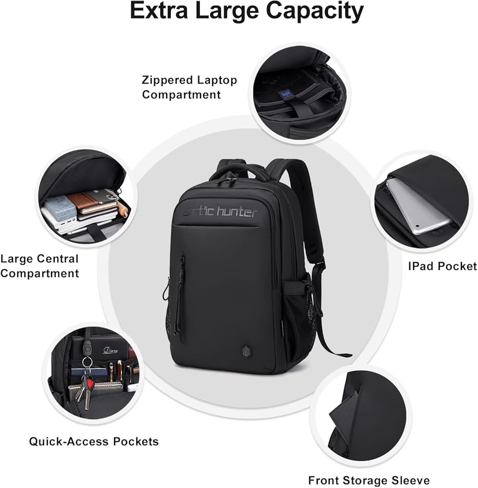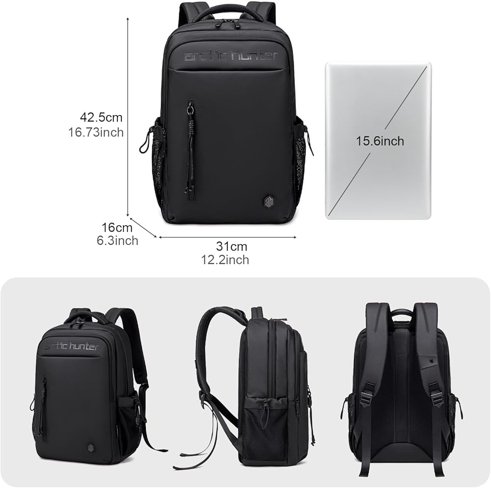 حقيبة ظهر للكمبيوتر المحمول للسفر من ARCTIC HUNTER AH للرجال، حقيبة عمل خفيفة الوزن تناسب كمبيوتر محمول مقاس 15.6 بوصة، حقيبة ظهر معتمدة من الطائرة، مقاومة للماء، متينة، سوداء