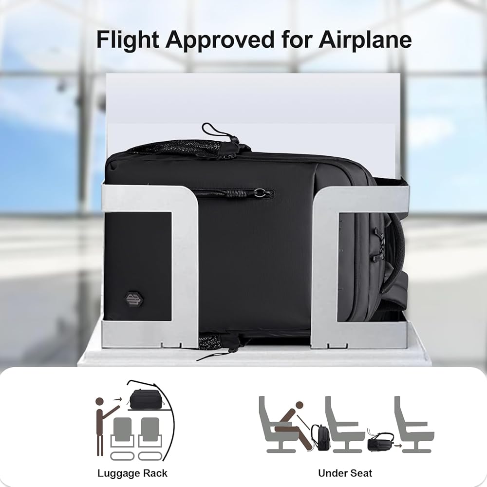 【حزام أمتعة مريح】: حزام الأمتعة الموجود على الجزء الخلفي من حقائب ظهر الكمبيوتر المحمول يسمح بوضع حقيبة الظهر على الأمتعة/حقيبة السفر، مما يحرر يديك في رحلة عمل. حقيبة ظهر للسفر مقاومة للماء تناسب أسفل المقعد وتلبي أيضًا متطلبات شركات الطيران.