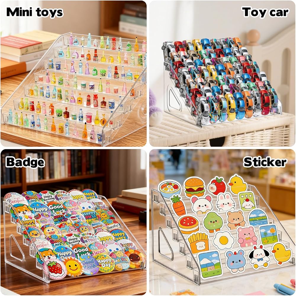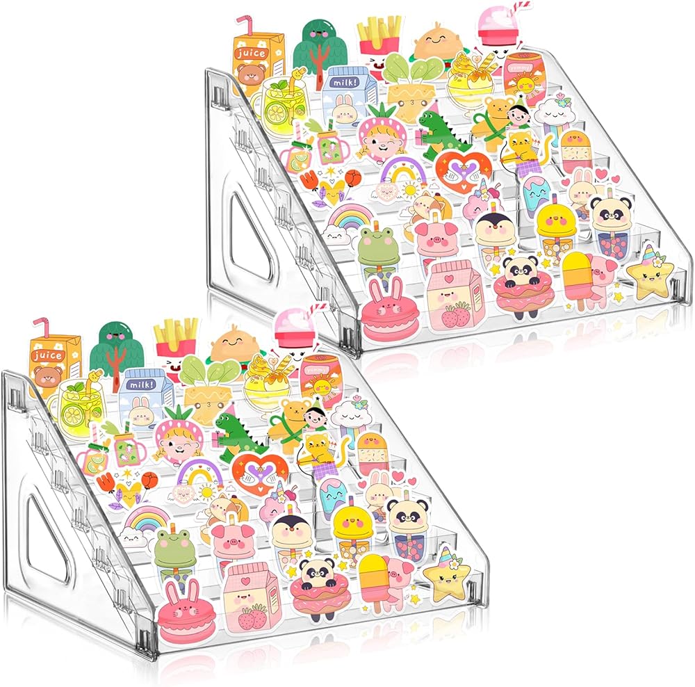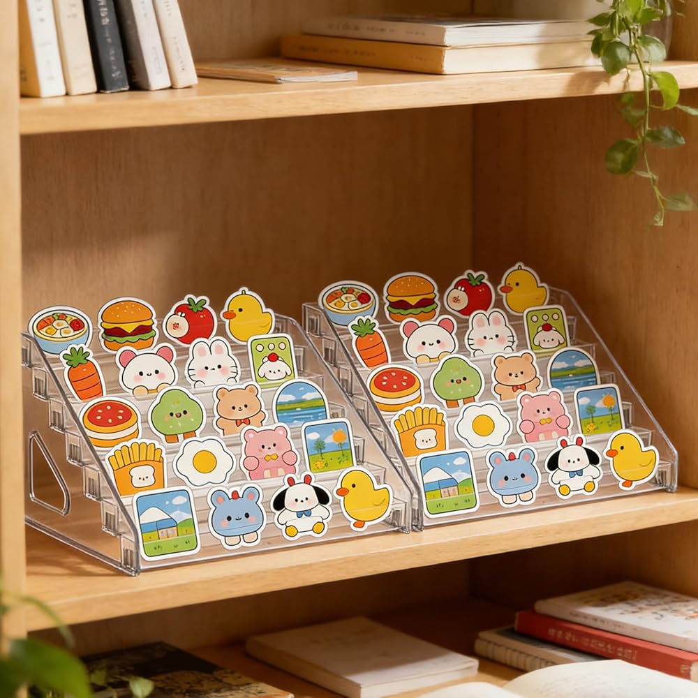 Versatile Display Stand Organizer: You will get 2 pack 7-tier acrylic clear sticker display stand offers an elegant way to showcase your trading cards, PSA cards, graded cards, baseball cards, sports cards greeting card and sticker display. Ideal for collectors, the versatile display for sticker helps organize while keeping them neat and easily accessible