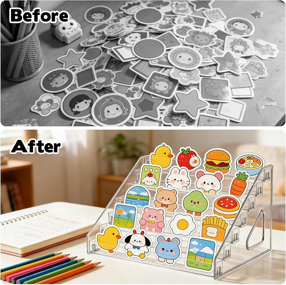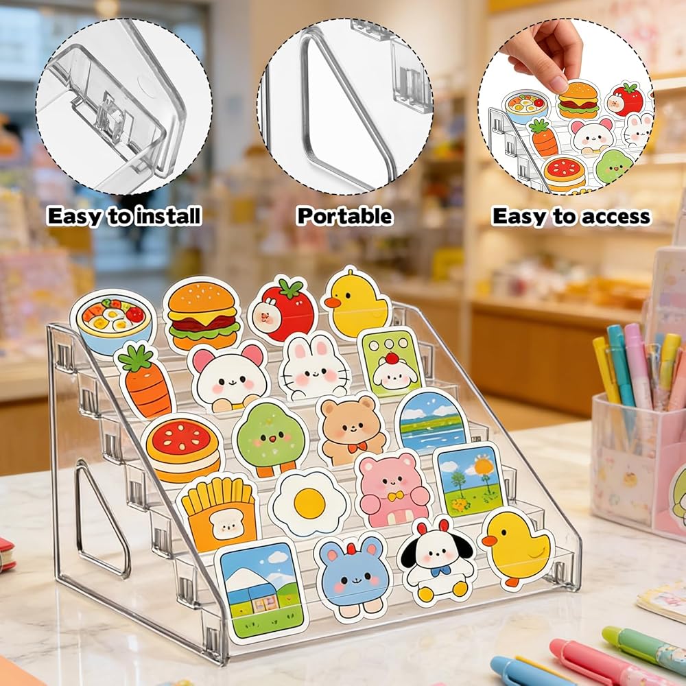 Premium Material: Clear sticker display stand is made from high-quality acrylic, this 7 tier perfumes display stand offers a solid base to securely hold your sticker. The sticker organizer display stand can help protect cards from damage while adding a sleek, modern touch to your home