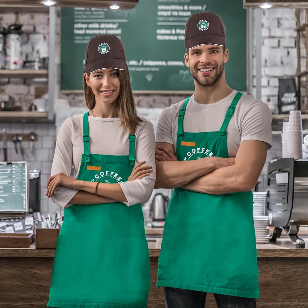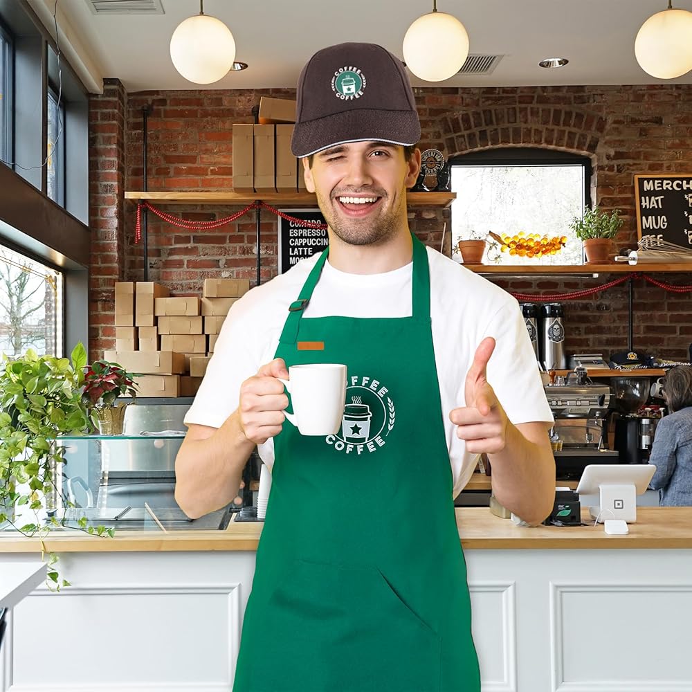 Universal size: The size of our barista apron and barista hat are adjustable, ensuring that most people can easily wear them. This adjustable size selection not only ensures a snug fit, but also helps provide us with a comfortable experience.
