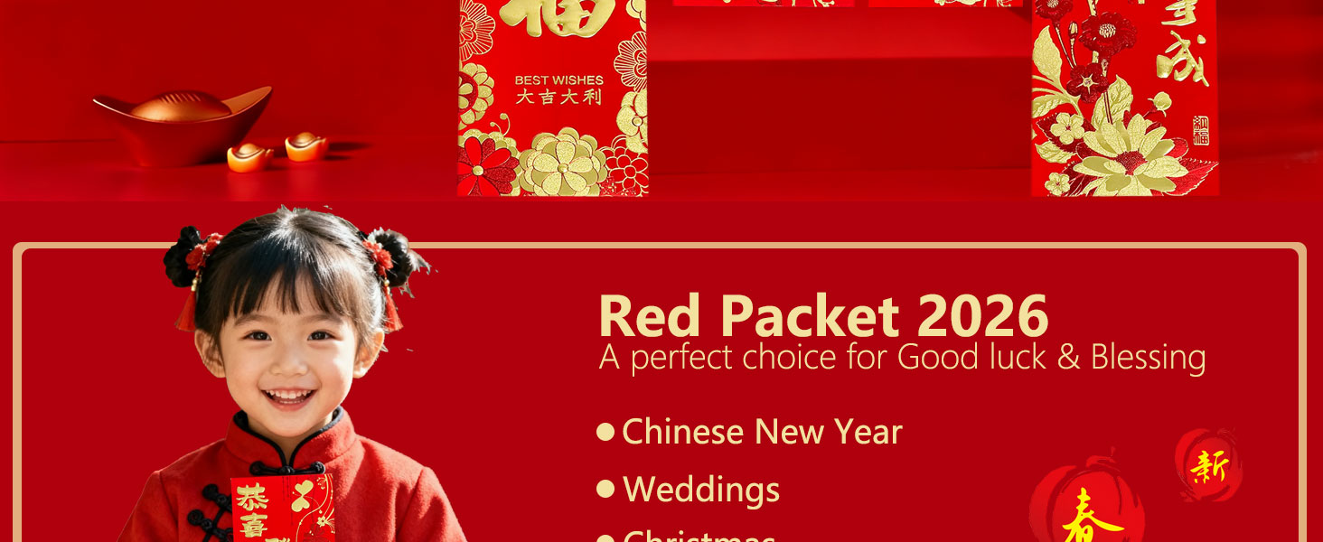 • مادة متفوقة: مصنوعة من ورق قوي وسميك، تم تصميم هذه الأظرف الحمراء للسنة القمرية الجديدة للحصان لتحمل الاستخدام المتكرر وضمان لمسة نهائية متينة وأنيقة. إغلاق آمن، يتميز بتصميم عروة وفتحة. ليست هناك حاجة للشريط أو الغراء، مما يجعل هذه المظاريف الحمراء الصينية 2026 سهلة الاستخدام ومريحة. حزم حمراء ذات قيمة كبيرة من المال المحظوظ لعام الحصان 2026.