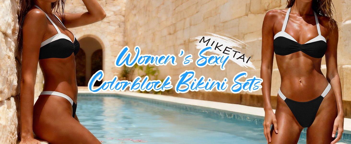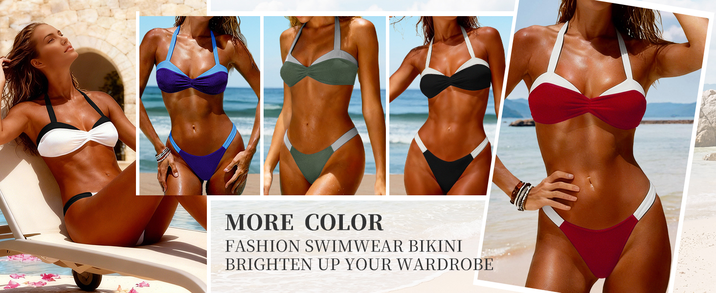 بدلة استحمام ذات كتل ملونة: تحتوي على رسن خلفي، كتلة ملونة، ومشبك إغلاق، مما يخلق مظهرًا داعمًا وعصريًا. هذا البكيني المناسب يجعل منحنياتك أكثر جاذبية.