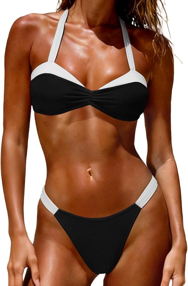 بيكيني مثير مكون من قطعتين: تتميز بدلة السباحة النسائية هذه المكونة من قطعتين بحمالة صدر مبطنة قابلة للإزالة للحصول على الدعم والشكل، مما يجعل صدرك يبدو أكثر استقامة، وجزء سفلي من البيكيني ذو قصة طويلة، مما يخلق مظهرًا لطيفًا وجذابًا.