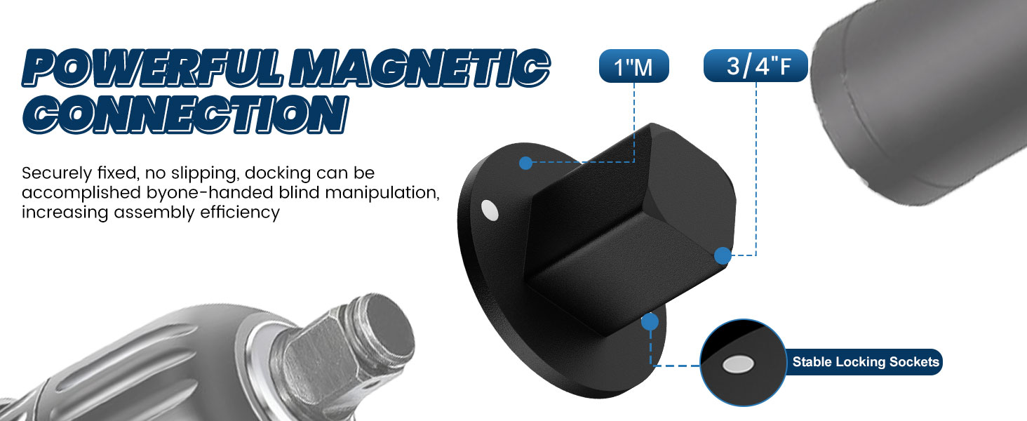 توافق واسع مع الأدوات: كمجموعة محول مقبس عملية، يمكن أن تكون متوافقة بمرونة مع المقابس، ومفاتيح الصدمات، ومفاتيح السقاطة، والمثقاب اللاسلكي، ومفاتيح عزم الدوران. يحتوي على سيناريوهات تكيف غنية ويقلل من قيود تكييف الأدوات للعمليات اليومية