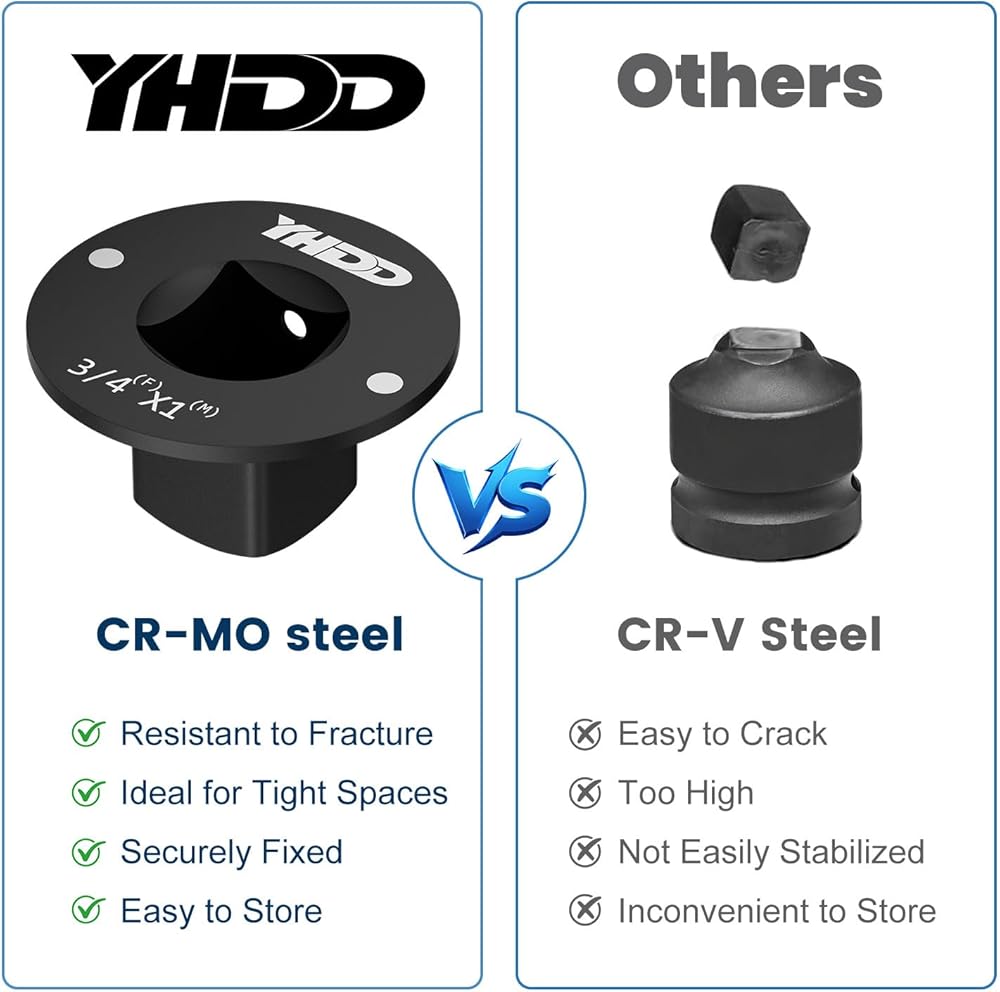 مادة متينة: محول المقبس المنخفض مصنوع من فولاذ الكروم الموليبدينوم عالي القوة، ويتميز بمتانة ممتازة ومقاومة للصدمات، مع طلاء فوسفات أسود مقاوم للصدأ على السطح. تسمح علامات الحجم الواضحة المحفورة بالليزر بالتعرف السريع والدقيق على المهام الفعالة عالية الطلب باستخدام مجموعة محول المقبس.