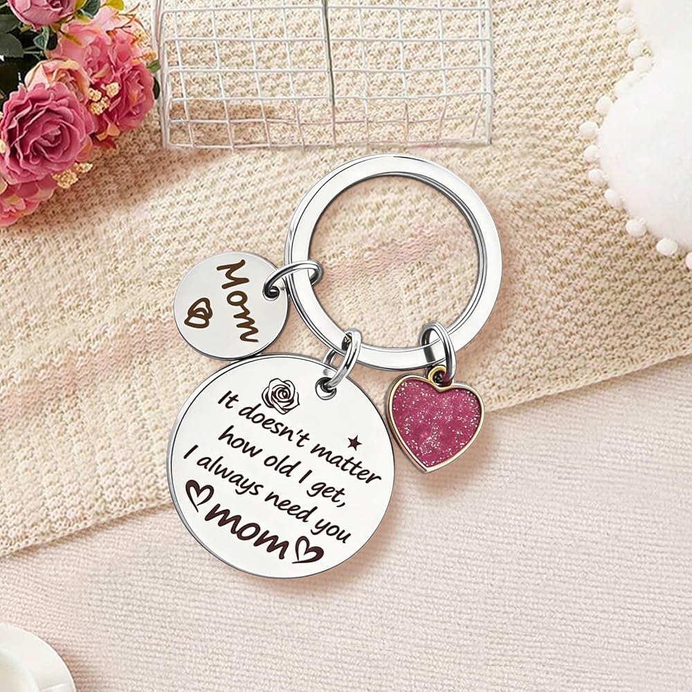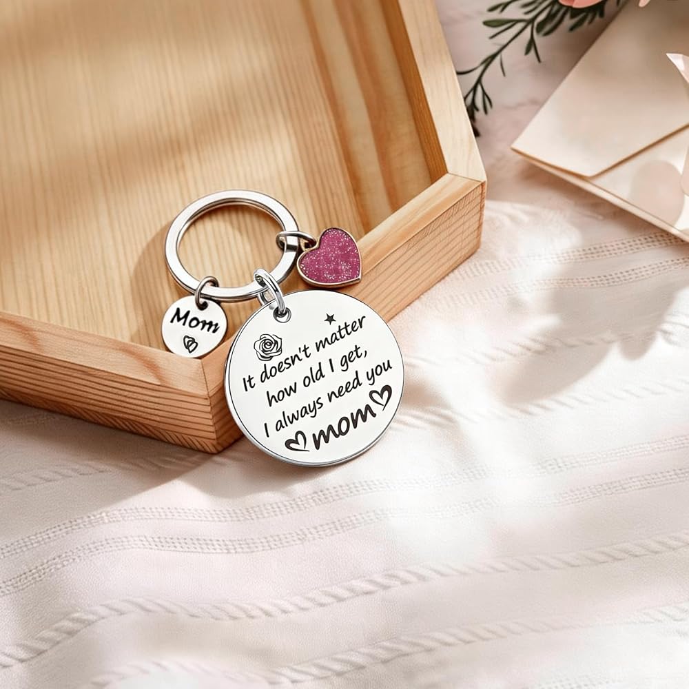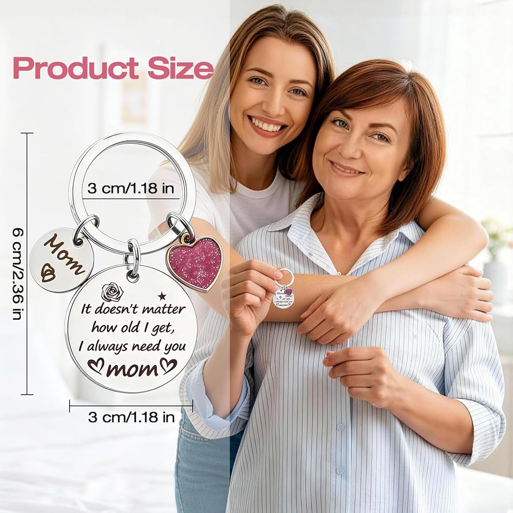 هدايا عيد الأم: هدايا عيد ميلاد أمي محفور عليها "لا يهم كم عمري، أنا دائمًا بحاجة إليك يا أمي." إنها بمثابة تذكير دائم برباطك، مما يجعلها أكثر من مجرد سلسلة مفاتيح هدية للأم. هدايا ممتازة للأم من الابنة، النقش العاطفي يعبر عن حبك وامتنانك بشكل مثالي
