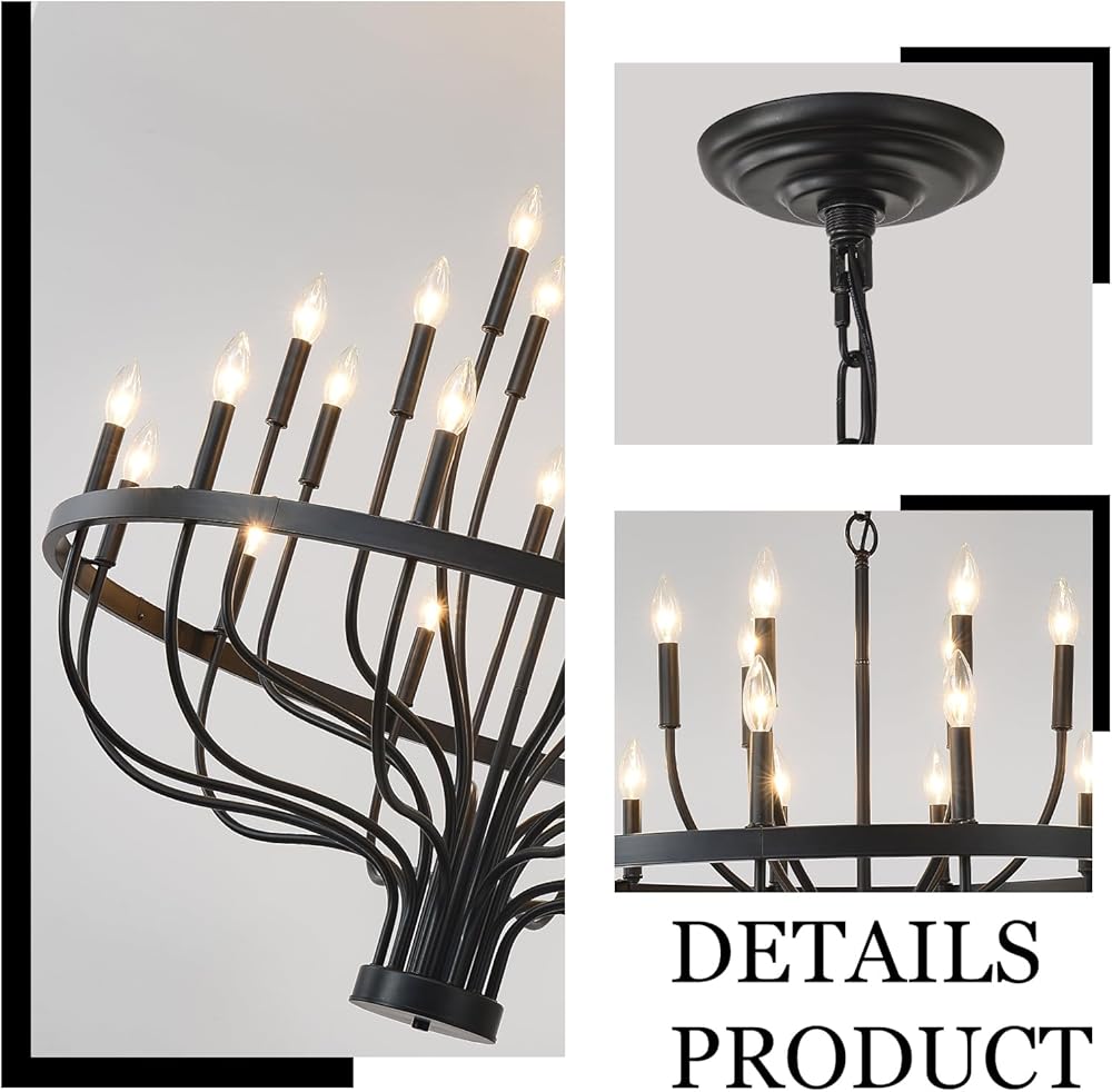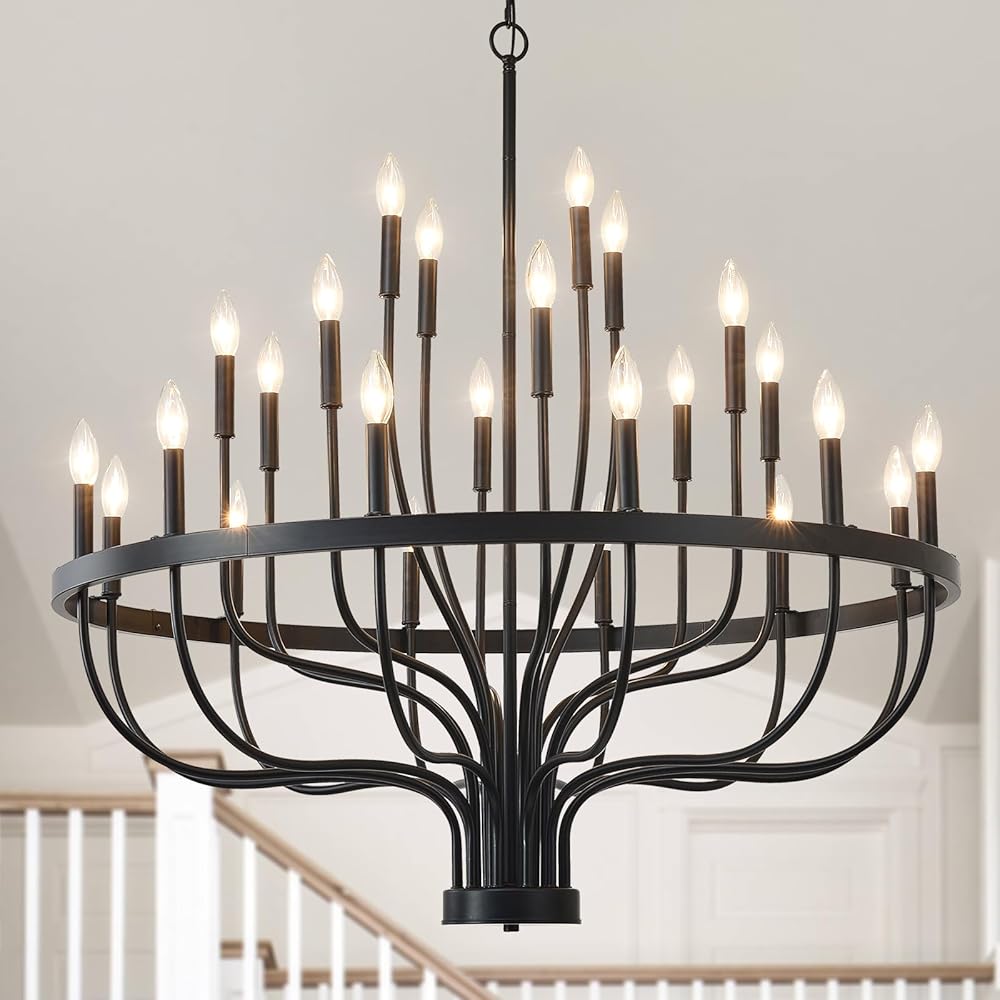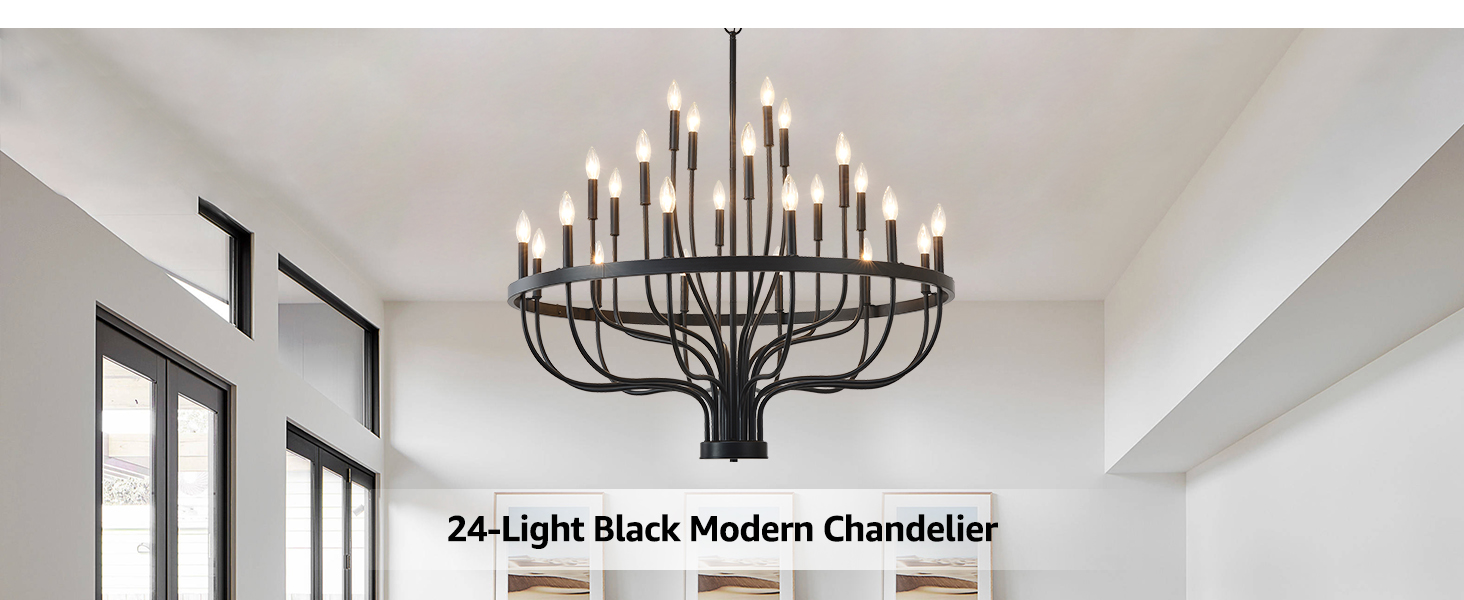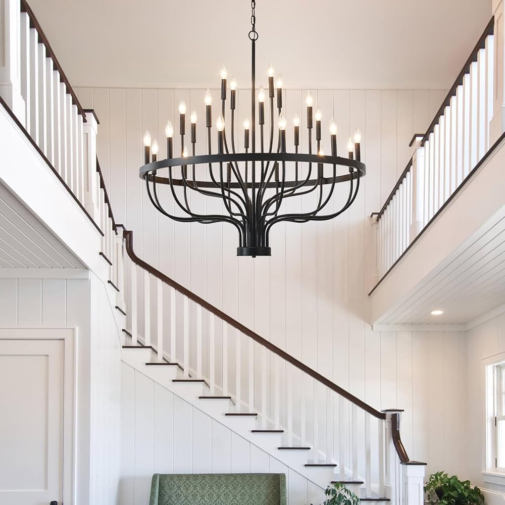 HHR 40 بوصة مزرعة بهو الثريا مدخل السقف العالي 24 ضوء، شمعة الثريا تركيبات الإضاءة الحديثة الثريات السوداء لغرفة الطعام غرفة النوم المدخل المطبخ غرفة المعيشة