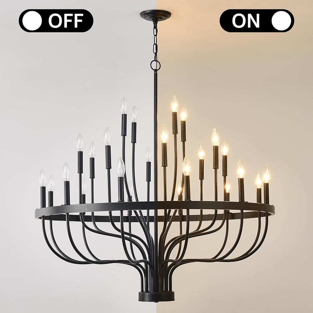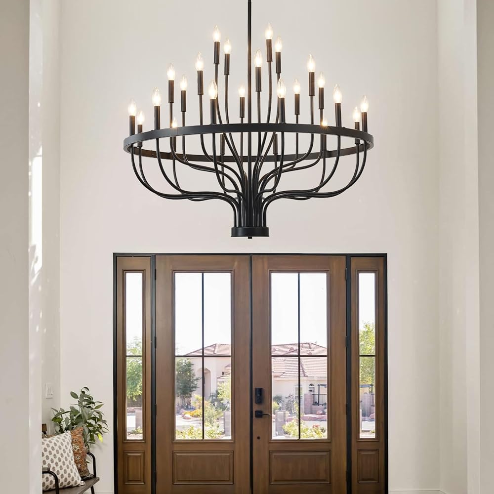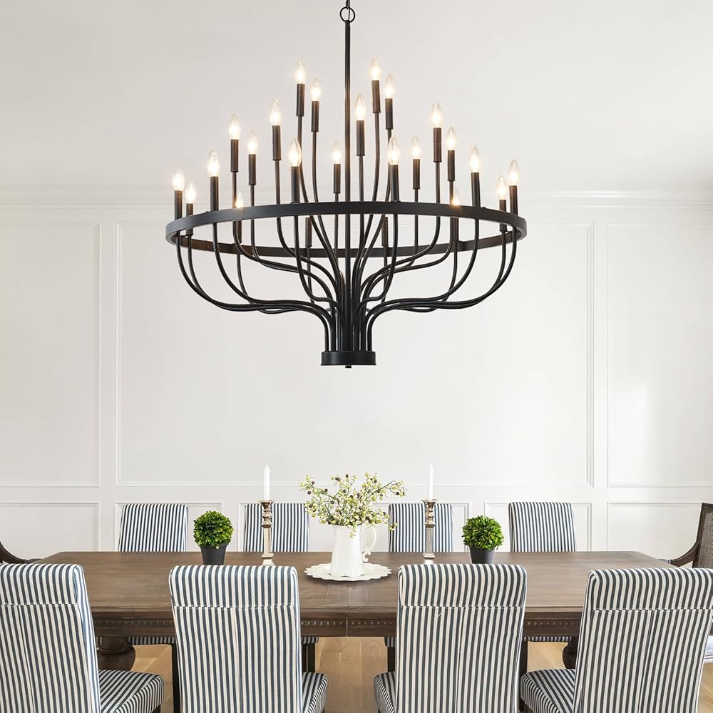 HHR 40 بوصة مزرعة بهو الثريا مدخل السقف العالي 24 ضوء، شمعة الثريا تركيبات الإضاءة الحديثة الثريات السوداء لغرفة الطعام غرفة النوم المدخل المطبخ غرفة المعيشة