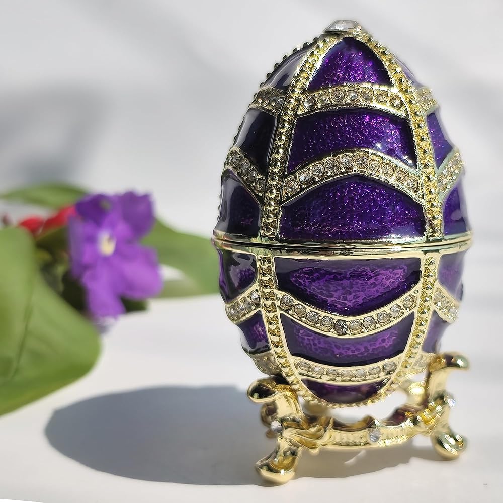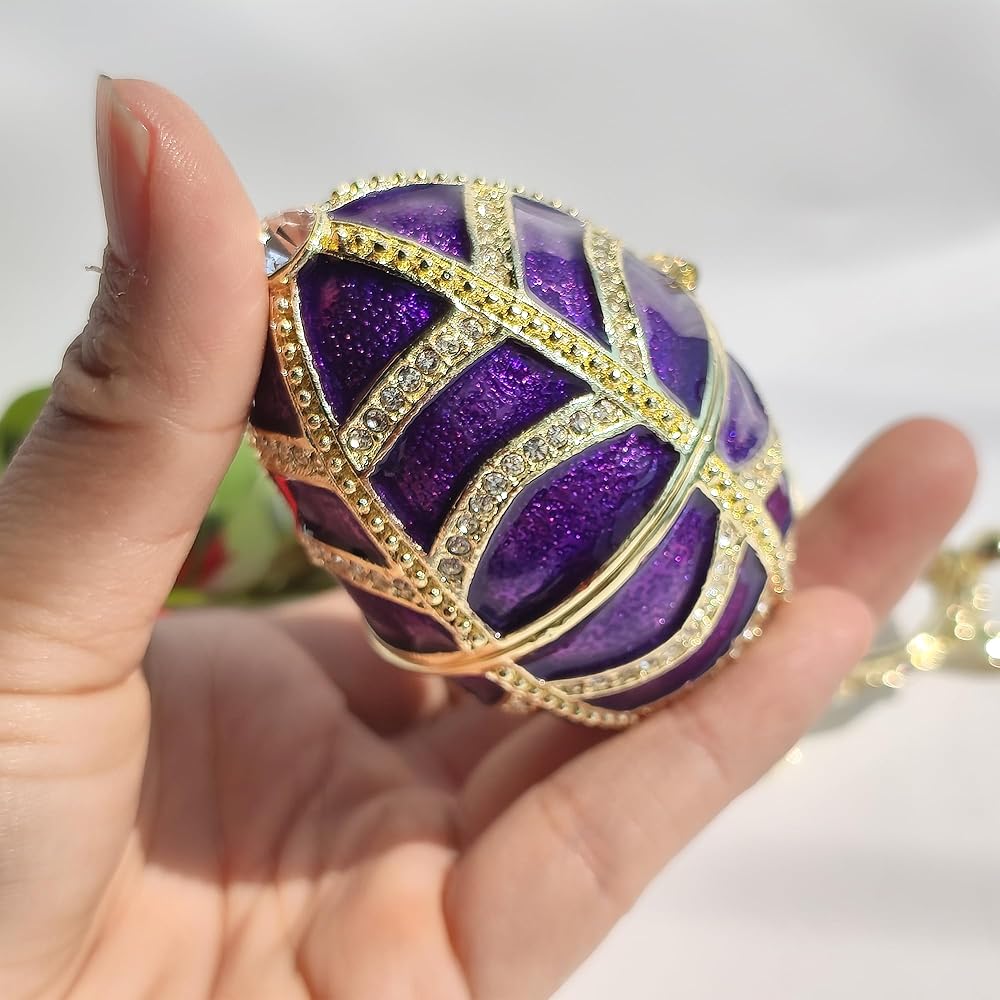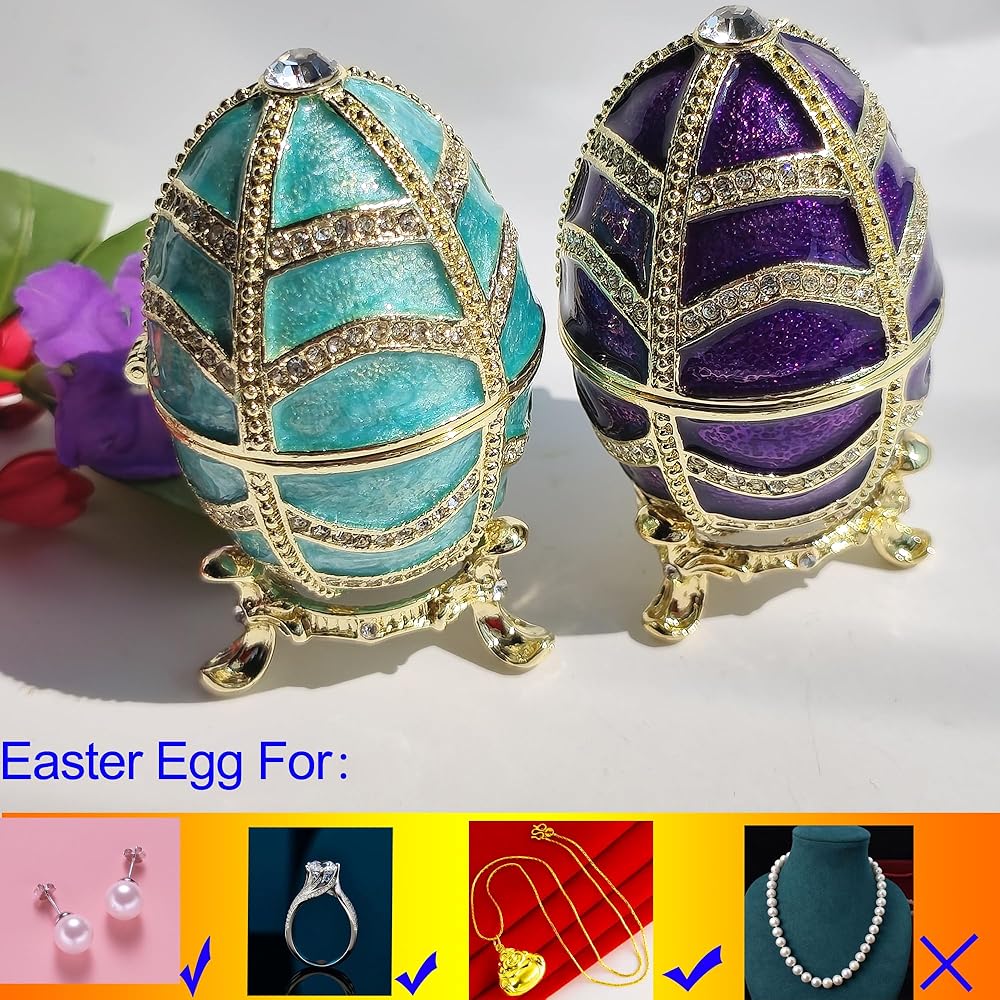 1. Eco-Friendly Materials & Exquisite Craftsmanship: This Enamel Easter Egg Jewelry Box is made from eco-friendly alloy and adorned with premium rhinestones, offering a graceful and elegant appearance. Each piece is meticulously handcrafted, showcasing the timeless beauty of ancient enamel art.
