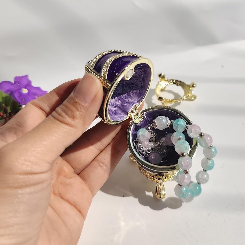 2. Compact & Functional Storage: Designed with a hidden compartment, this beautiful enamel Faberge egg trinket box opens to reveal a spacious interior, perfect Treasure Storage Box for storing rings, necklaces, earrings, and other small treasures, keeping them organized and secure.