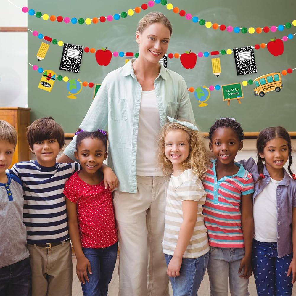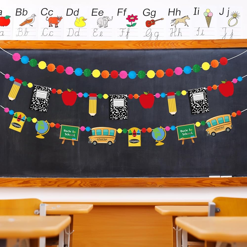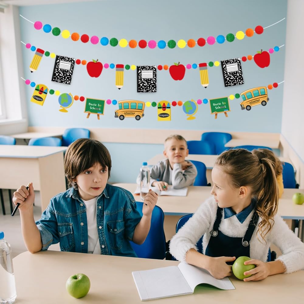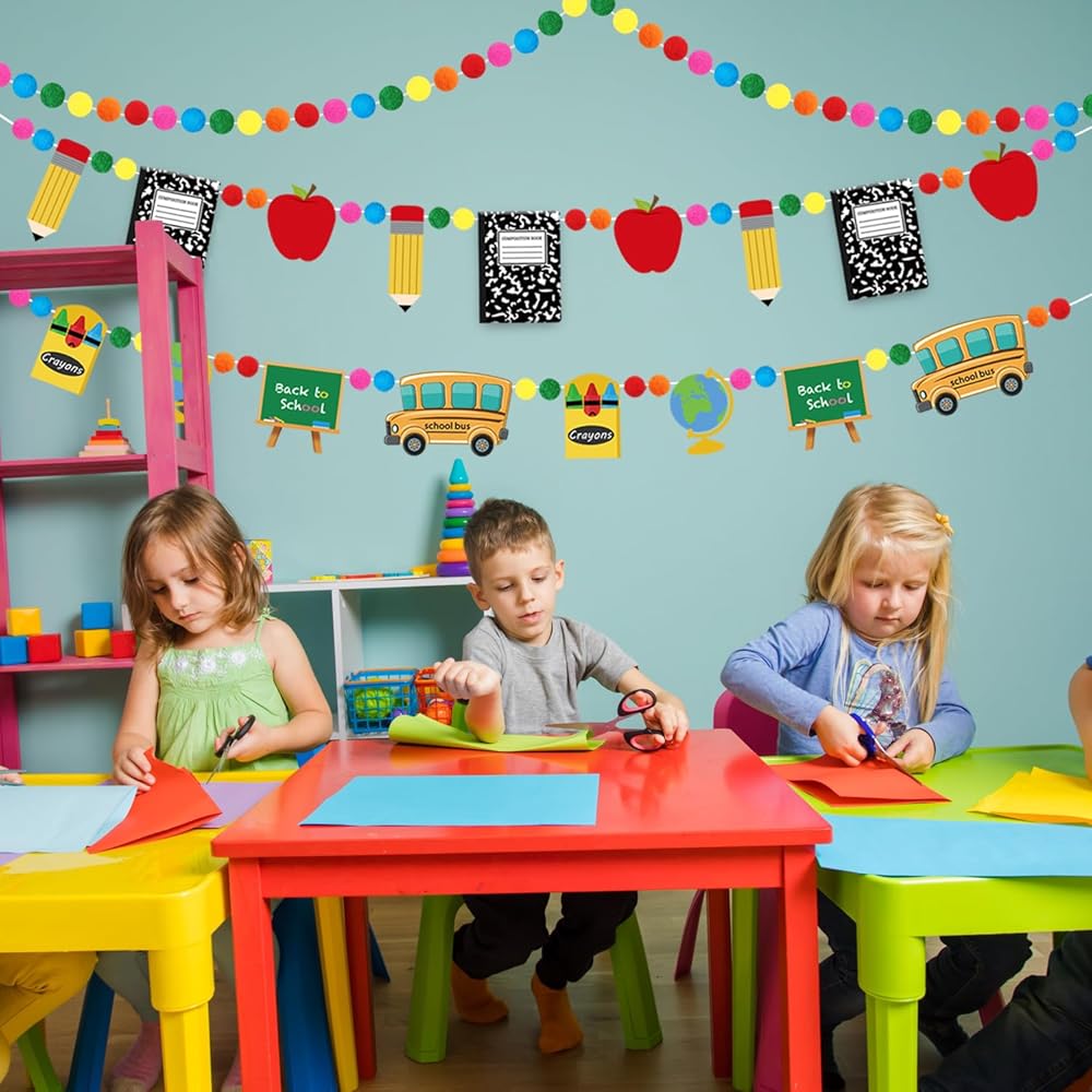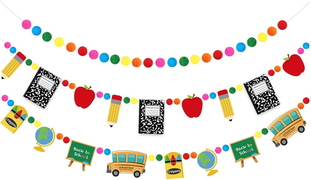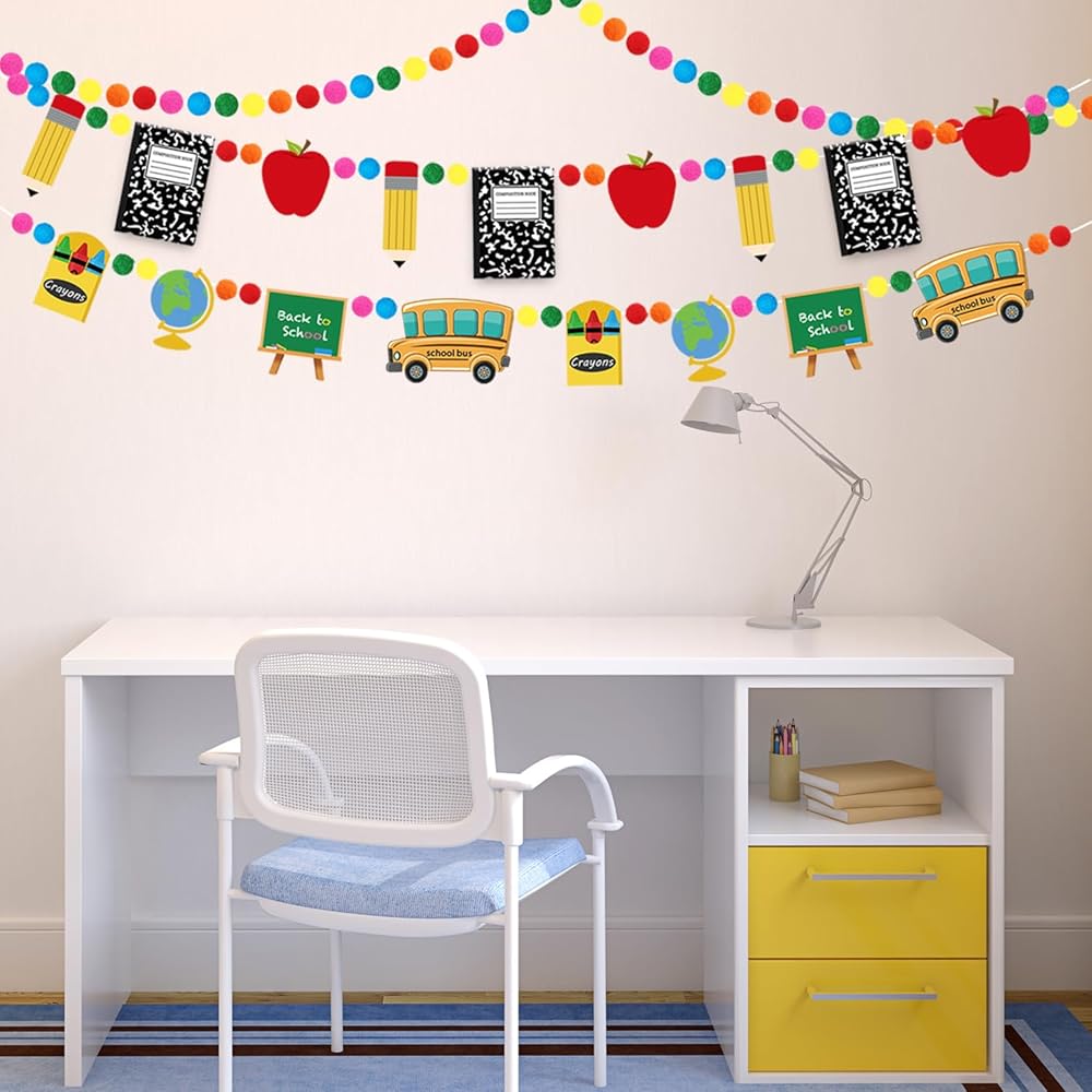 Featuring back to school theme, designed with pencil, crayon boxes, apples, notebook, pompom ball and school bus etc exquisite and eye-catching, can create a fun and pleasant atmosphere, become an eye-catching decoration at the party.