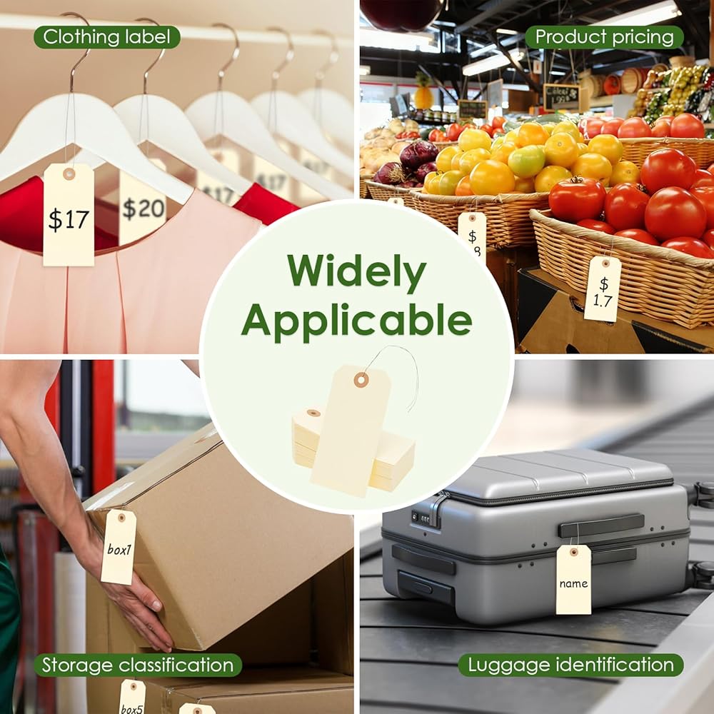 تستخدم على نطاق واسع: بطاقات الأسعار ذات الخيط مناسبة لسعر السوق، ووضع علامات أسعار الملابس، والتخزين وتصنيف الخدمات اللوجستية، وتحديد الأمتعة، والأجزاء، والآلات والسيناريوهات الأخرى، اقتصادية وعملية