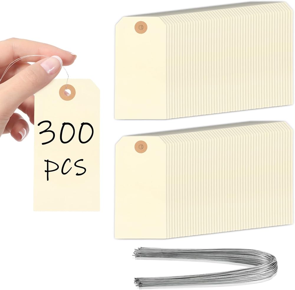 ما ستحصل عليه: تحتوي هذه المجموعة على 300 قطعة من بطاقات الأسعار لوضع العلامات (بما في ذلك عدد مطابق من أسلاك الحديد المعلقة. البطاقات الورقية والأسلاك عبارة عن حالات منفصلة، وتحتاج إلى تعليق ثقوبها الخاصة)، وهو ما يكفي لتلبية احتياجاتك في الاستخدام