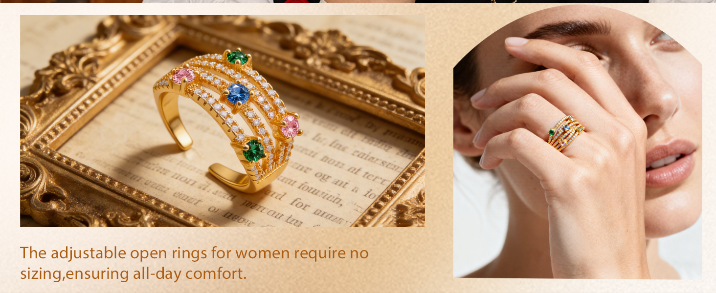 حلقة مفتوحة قابلة للتعديل: تم تصميم هذه القطعة من المجوهرات كحلقة قابلة للتعديل للنساء، مما يسمح بتعديل الحجم بسهولة لتحقيق طلاء عالي الجودة وملاءمة مثالية لضمان الراحة طوال اليوم.