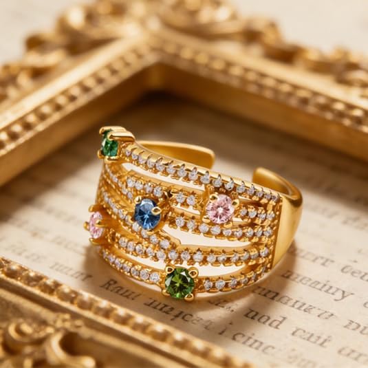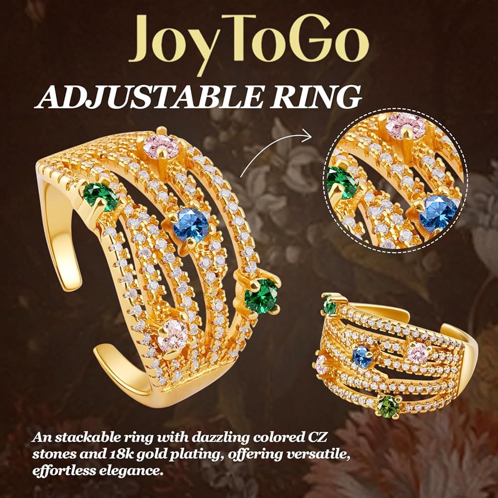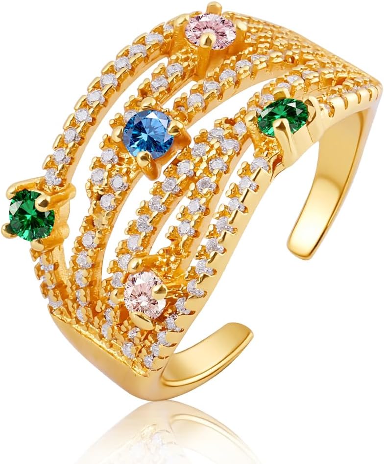 تصميم لافت للنظر: مستوحاة من مساحة تكديس ثلاثية الأبعاد مع أحجار تشيكوسلوفاكيا المتلألئة الملونة، تتميز هذه الحلقات المفتوحة بتصميم سحري، كل حجر زركونيا من الدرجة AAA تم تركيبه يدويًا بدقة.