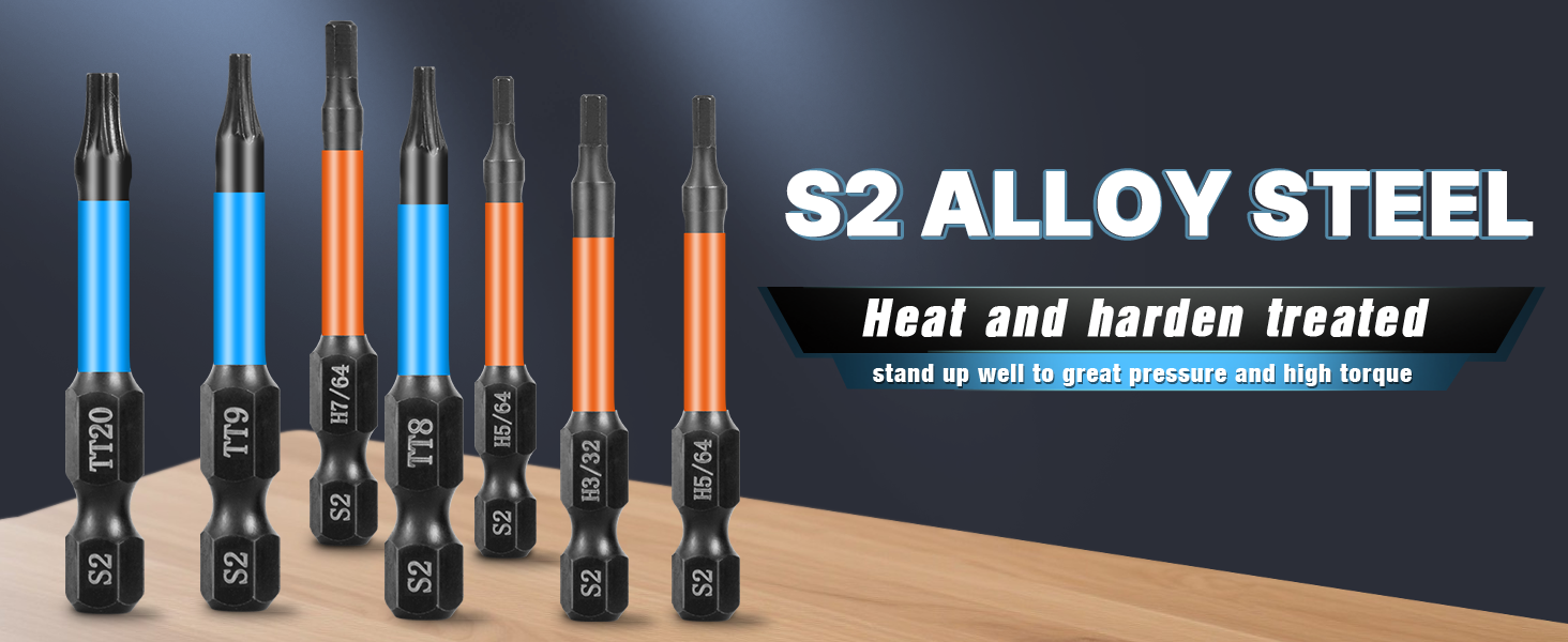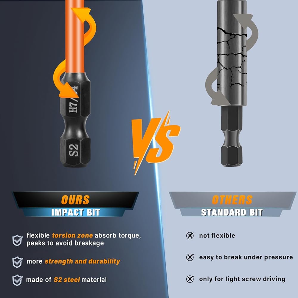 عمر طويل الأمد، تتميز لقم مفك البراغي ذات التأثير بتصميم فريد من نوعه لمنطقة الالتواء يمتص عزم الدوران الأقصى، ويمنع الكسر. مجموعة اللقم السداسية الفولاذية S2 ذات الساق السداسية مخصصة لمفك الصدمات وقيادة البراغي الثقيلة.