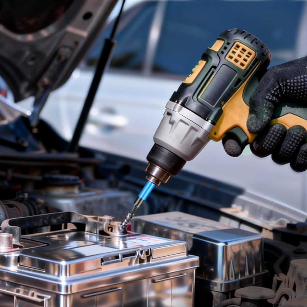 حامل تمديد لقم المثقاب المغناطيسي، تأتي مجموعة اللقم مع حامل تمديد لقمة المثقاب المغناطيسي لسهولة الوصول إلى البراغي وتثبيتها في المساحات الضيقة. تظل المغناطيسية قوية بعد الاستخدام المتكرر، مما يوفر أداءً موثوقًا لجميع المشروعات.