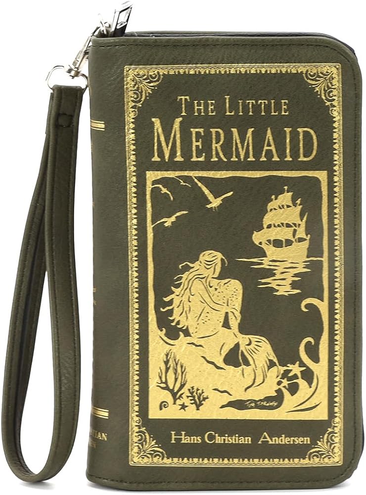 This handcrafted wallet features a vintage book cover design with the classic tale 'The Little Mermaid' by Hans Christian Andersen.
