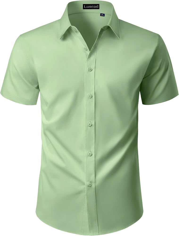 Fed up with coffee spills or lunch stains ruining your look? Our men's short sleeve dress shirt solves this—blending stain/water/oil resistance, comfort, and timeless style seamlessly.