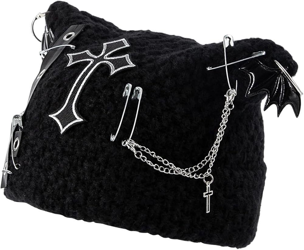 Unique Style Fusion Cat Ear Beanie: Perfectly blends goth-punk elements. The playful cat ears add a lively touch, while metal decorations like crosses, chains, and pins create a rebellious and eye-catching look, making it easy to build a highly individual style.