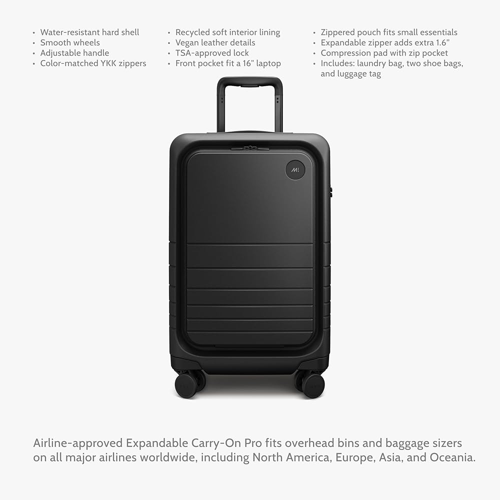 The Expandable Carry‑On Pro pairs quick‑access tech storage with on‑demand packing space. A padded front compartment stows laptops up to 16" plus travel docs, while the expandable gusset adds +1.6" depth for souvenirs or layers. High‑performance wheels and a sturdy telescopic handle keep movement effortless. At 22" x 14" x 10" (to 11.6" expanded) and 8.59 lb, ~36–41 L volume, for 2–5 day trips. TSA lock and YKK zippers included; limited lifetime warranty. Monos is proud to be the first North American luggage brand to achieve Certified B Corporation® status, joining a community of like-minded businesses committed to the highest standards of social and environmental stewardship. The B Lab assessment, at the heart of our B Corp certification, holds us accountable for our impact across five key areas – governance, workers, community, environment, and customers. This certification represents more than a seal of approval, it's a testament to our belief that thoughtful design can coexist with social and environmental consciousness. For the discerning traveller who values quality over quantity, this certification assures that every Monos piece is crafted with careful consideration for both people and the planet. By choosing us, you embrace a way of seeing – one that values longevity over transience and purpose over excess.