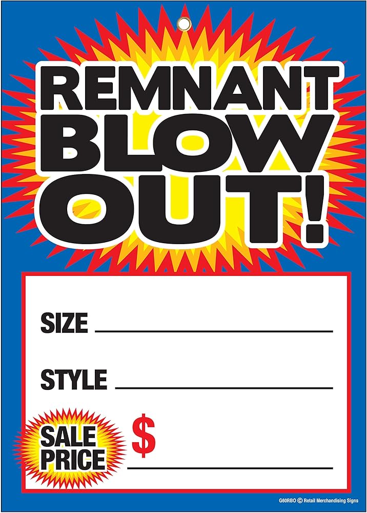 Retail Carpet and Flooring Sale Tags - Use one of our flooring tags slogans Carpet Sale, Mill Direct Price, Remnant Sale, Rug Sale, Vinyl Floor Sale, And Laminate Floor Sale to get your message across.Attention-getting tags are printed with bright, vivid colors on sturdy 10-PT glossy card-stock. Reinforced with a brass ring, these tags are designed to last. Attach with our tagging gun or 3" monster carpet pins. Retail Merchandising Signs LLC tags are proudly manufactured by us in the USA.