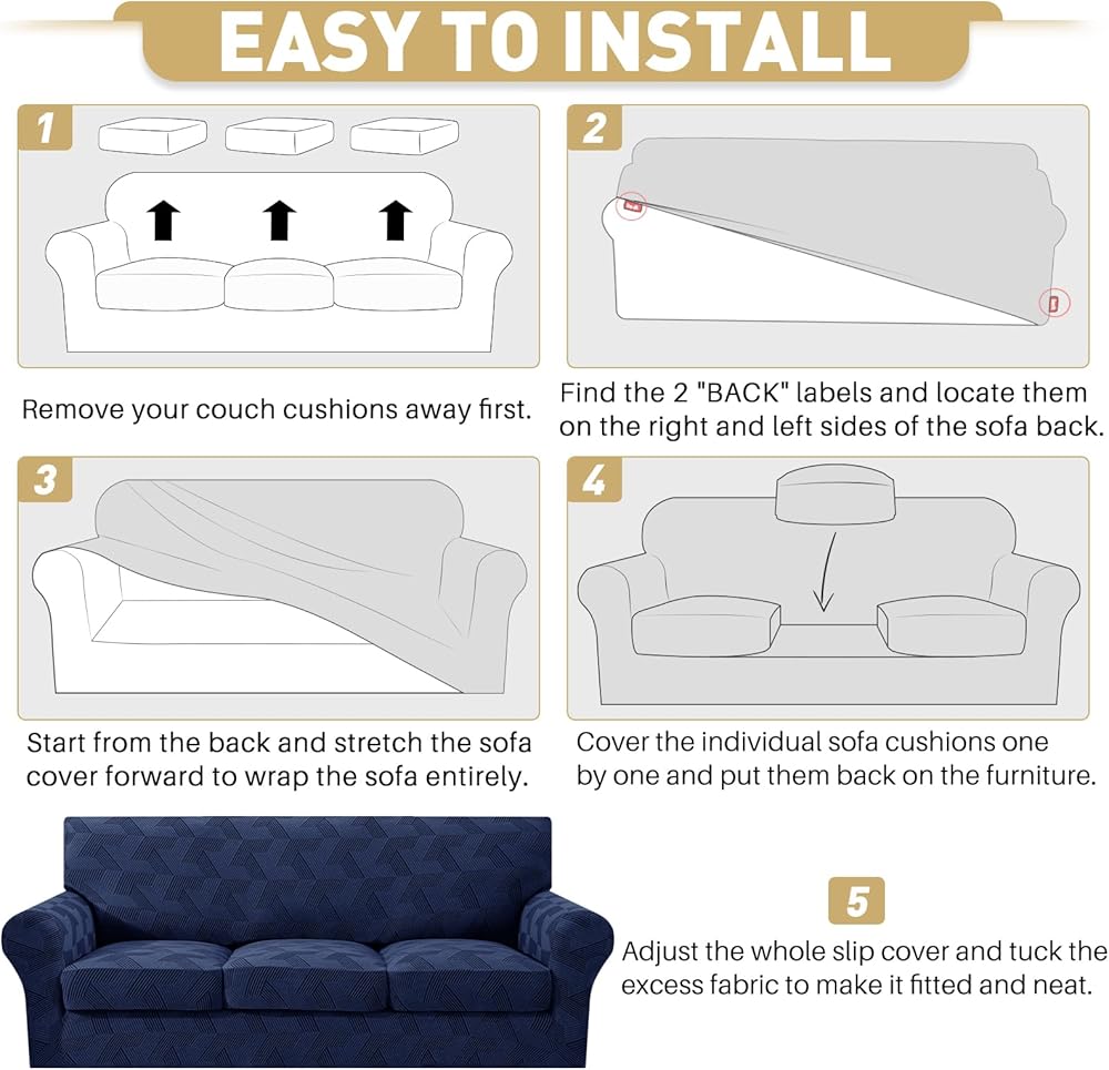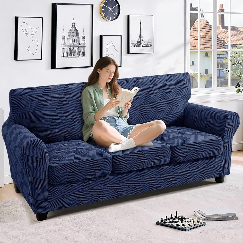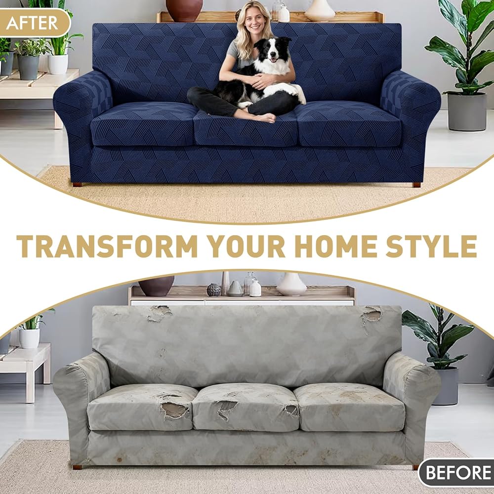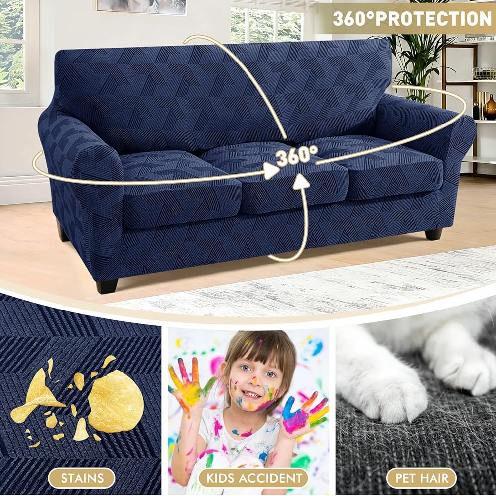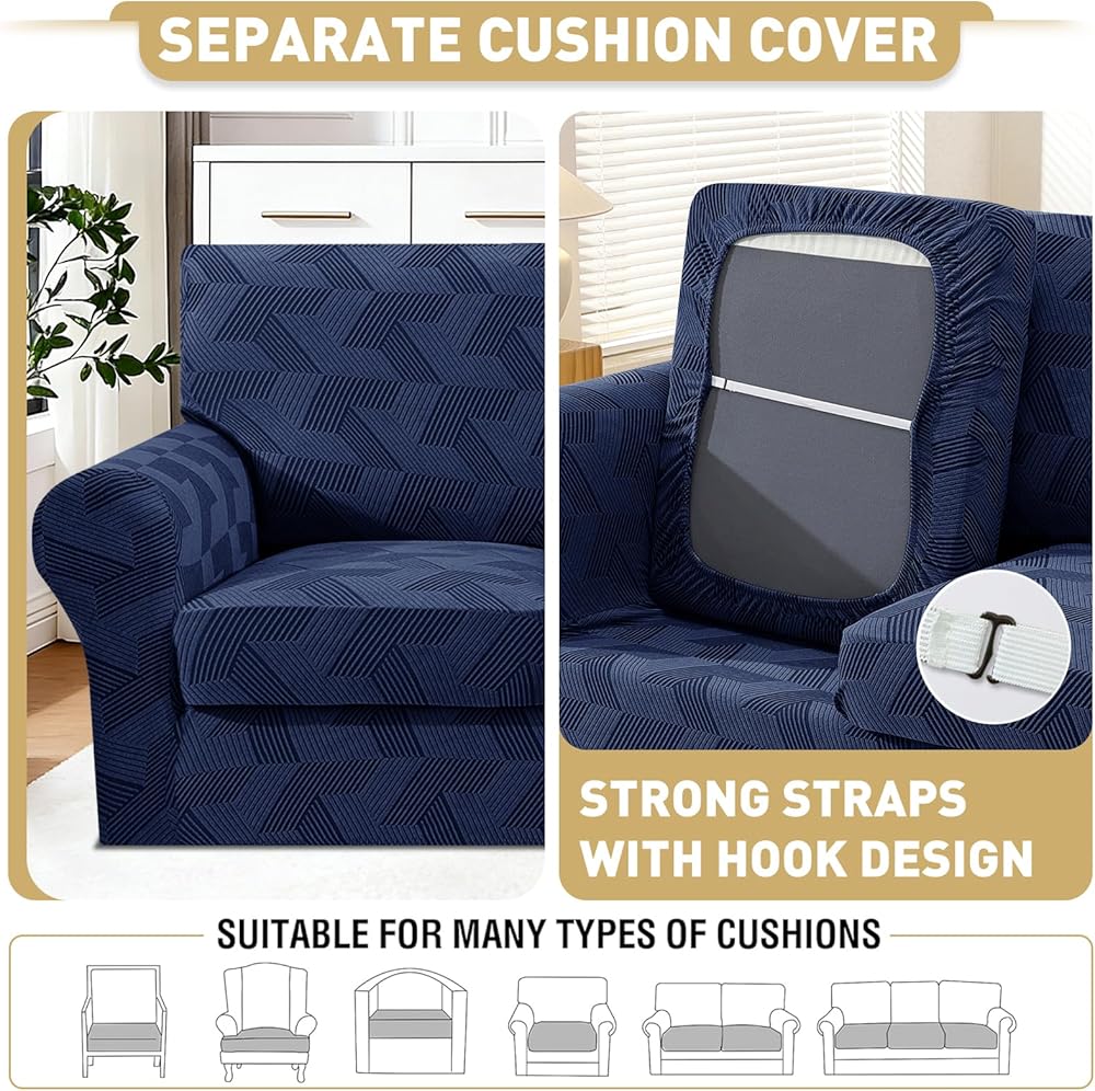 • 4-Piece Design: JIVINER 4 pieces stretchy sofa covers for 3 cushions are specially designed for couches with individual seat cushions, including 1 piece base cover and 3 pieces cushion covers for separate seat cushions. With 3 additional cushion covers, our 4 pieces magic sofa covers can be more fitted than normal 1 piece sofa slip covers which can cover your cushions individually, no need to constantly tuck or adjust the slipcover, easier to install and take off