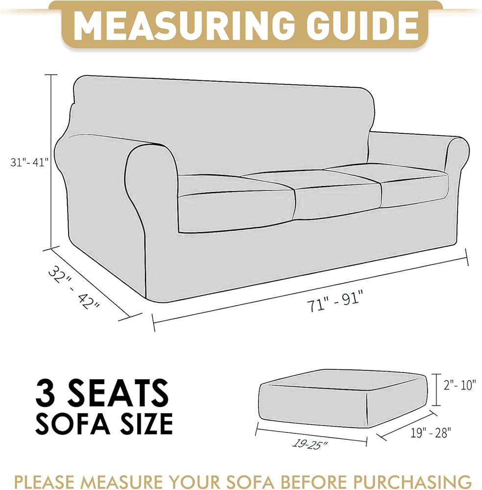 • SIZES & WARRANTY: This stretchable sofa slipcover fits for most types of sofa. For good fit, please measure your sofa size refer to the MEASURING GUIDE before purchasing. Chair Cover: 31"-46", Loveseat Cover: 55"-69", Loveseat Cover: 71"-91",Sofa Cover: 71"-91", XL Sofa Cover: 91"-110". We think our high quality sofa furniture protectors can satisfy you.