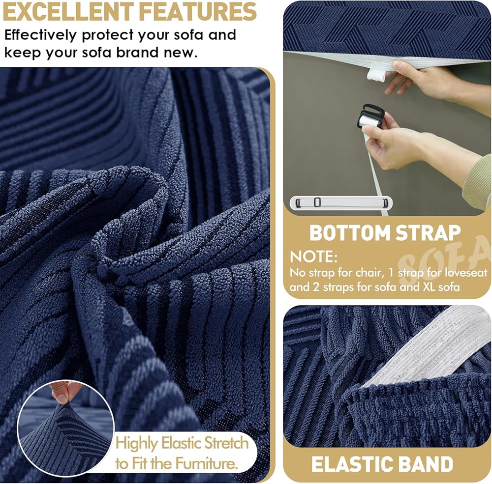 Soft sofa slipcovers can fit your sofa couch perfectly and become a centerpiece in your living room. Featuring with elastic bands and foam sticks, fitted sofa covers will not easily move or shift after using