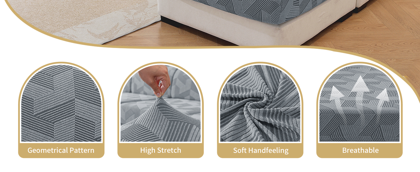 ابق في مكانه: قاعدة مرنة سميكة غير قابلة للانزلاق تمنع الانزلاق. ومن أجل البقاء في مكانه بشكل أفضل، يضيف الجزء السفلي من الغطاء حزامًا مطاطيًا إضافيًا. يمكن أن تبقى أغطية وسائد الأريكة الخاصة بنا مشدودة دون أي تمزق أو تجعد أو تحرك أو انزلاق حتى على الأريكة الجلدية والقماش. من السهل جدًا ارتداؤه وإنزاله.
