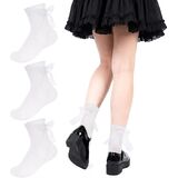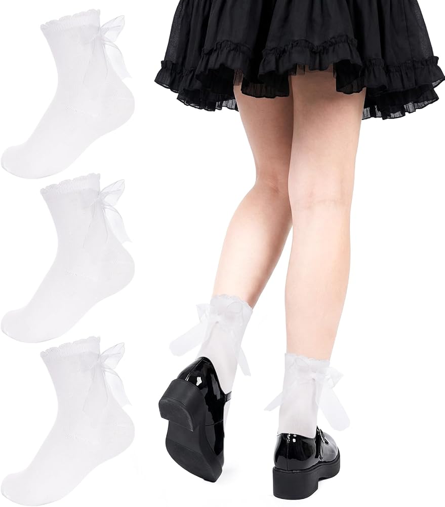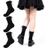 Each pair features a large, airy organza bow and delicate ruffled cuffs that catch the eye without feeling heavy. The thin, stretchy nylon-spandex blend is soft against your skin and breathable enough to keep feet comfortable year-round—cool in summer, and lightweight enough to layer under boots in fall.