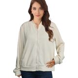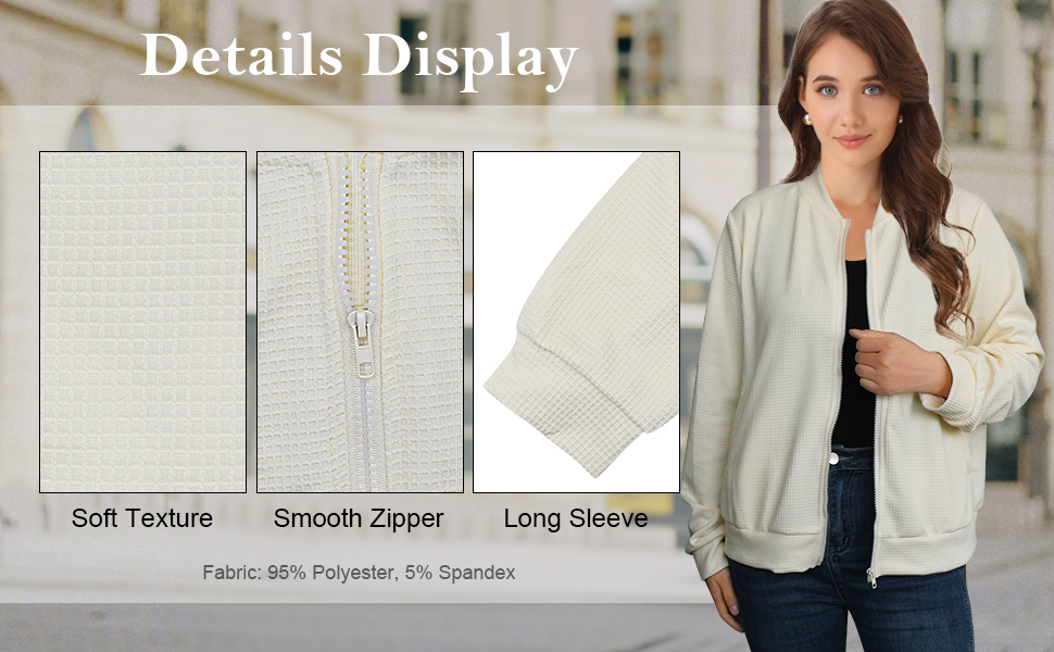 التصميم: تتميز هذه السترة النسائية ذات السحاب بتصميم بومبر خالد بأكمام طويلة، وسحاب أمامي أنيق، وجيبين جانبيين لمزيد من الراحة. ياقة بيسبول، سحاب أمامي، سترة كاجوال.