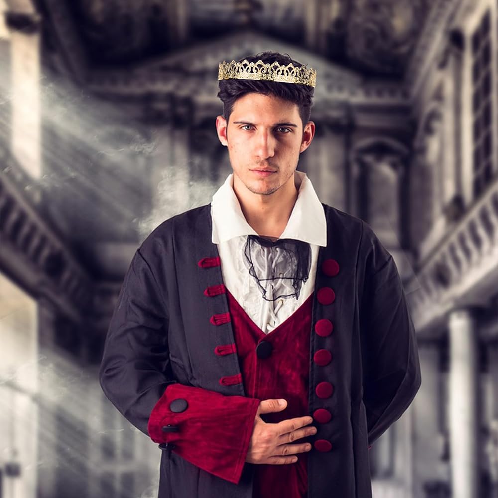 تاج الملك الذهبي في العصور الوسطى وتيجان الأمير للرجال، تاج ذهبي لعيد الميلاد، هدايا لحفلات الهالوين للرجال